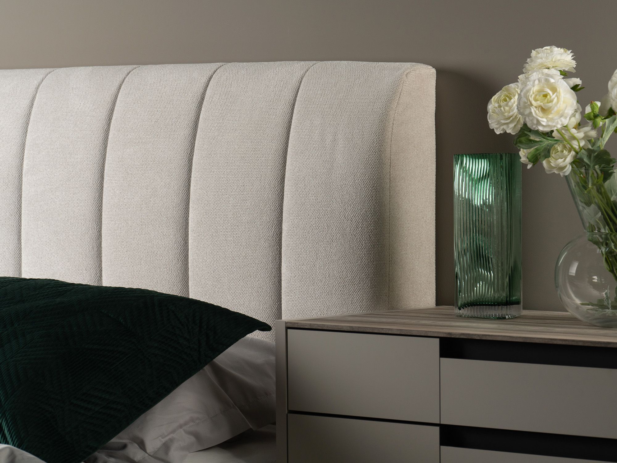 Исполнение задней стенки кровати: ткань Piano в основном цвете ткани кровати.