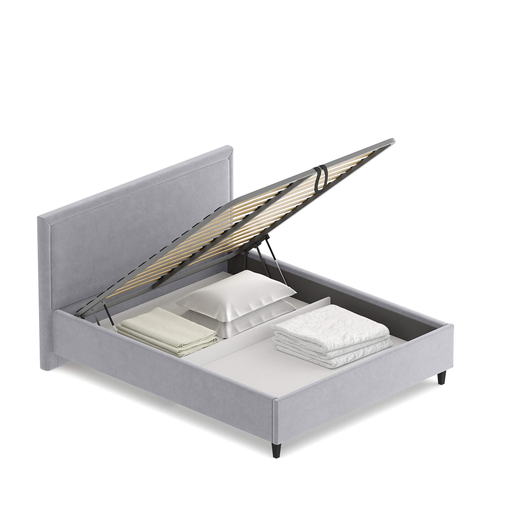Под решеткой располагается большое (по всей площади кровати) отделение для хранения одеял, подушек, демисезонной одежды и других вещей. Ящик разделен на два отсека для сортировки вещей.
