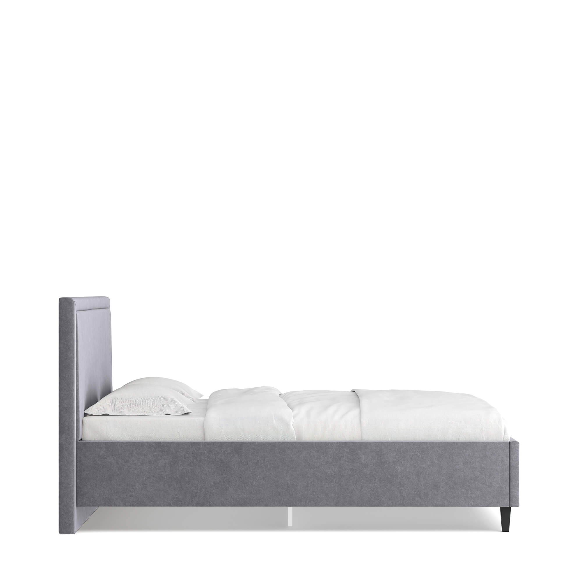 Оборотная сторона изголовья выполнена в обивочной ткани, что позволяет поставить кровать в центре комнаты и зонировать пространство.