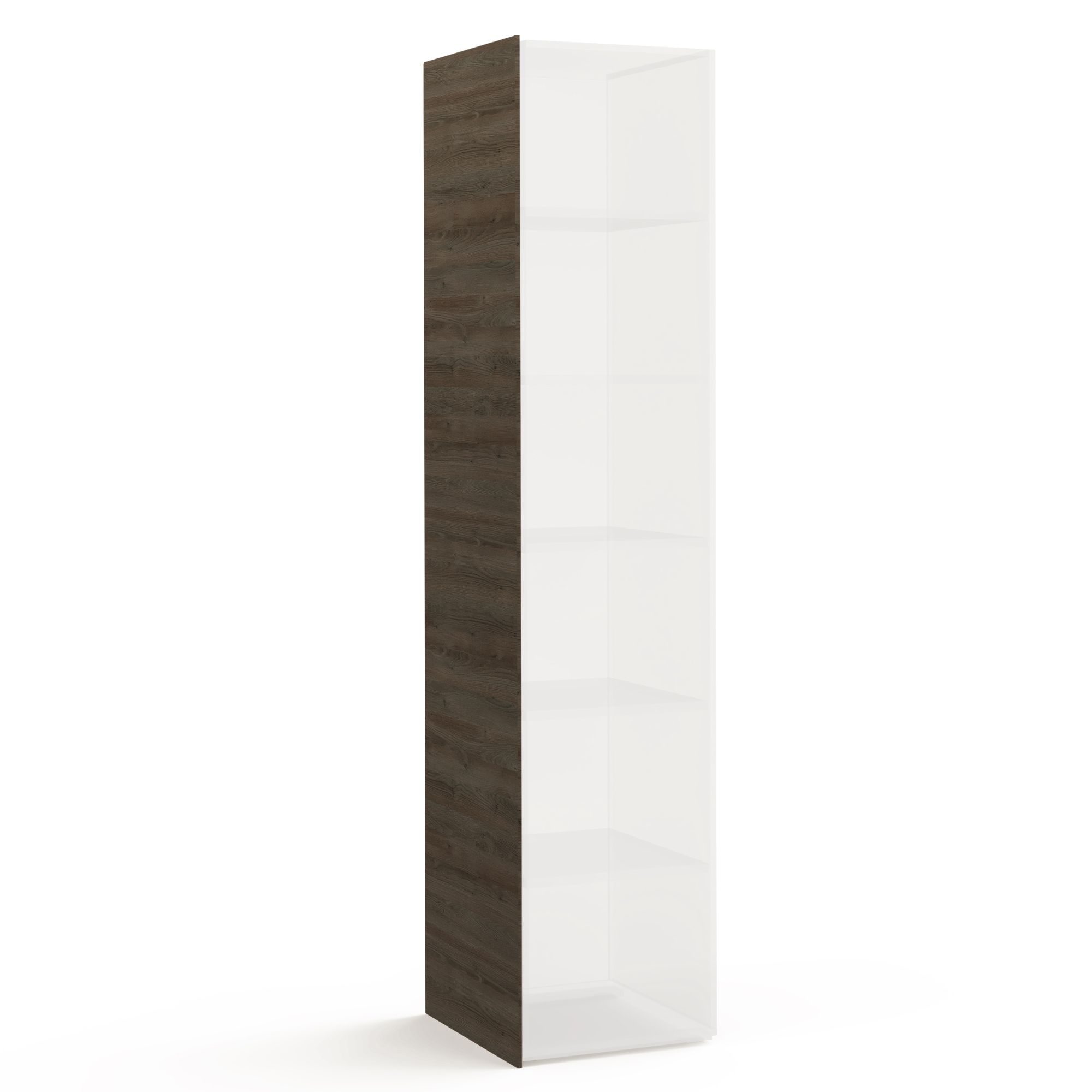 Боковая стенка BRUNO в текстуре Дуб Гладстоун Сепия применяется для завершения шкафных композиций, а также в качестве перегородки: между угловым и прямым шкафом либо между угловым шкафом и завершающим элементом для придания завершенного вида и графичности шкафной композиции. Стенка не устанавливается между прямыми шкафами, а также между прямым шкафом и завершающим элементом.