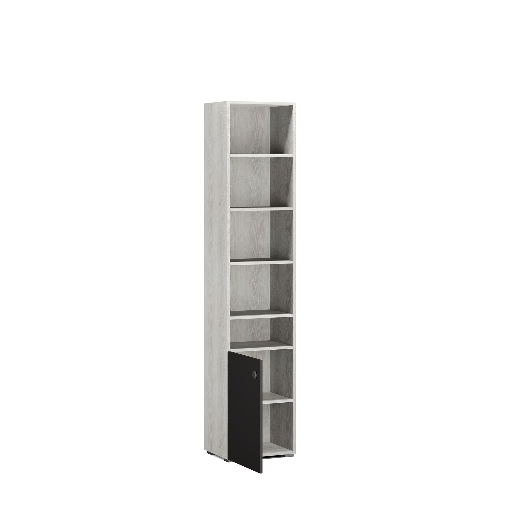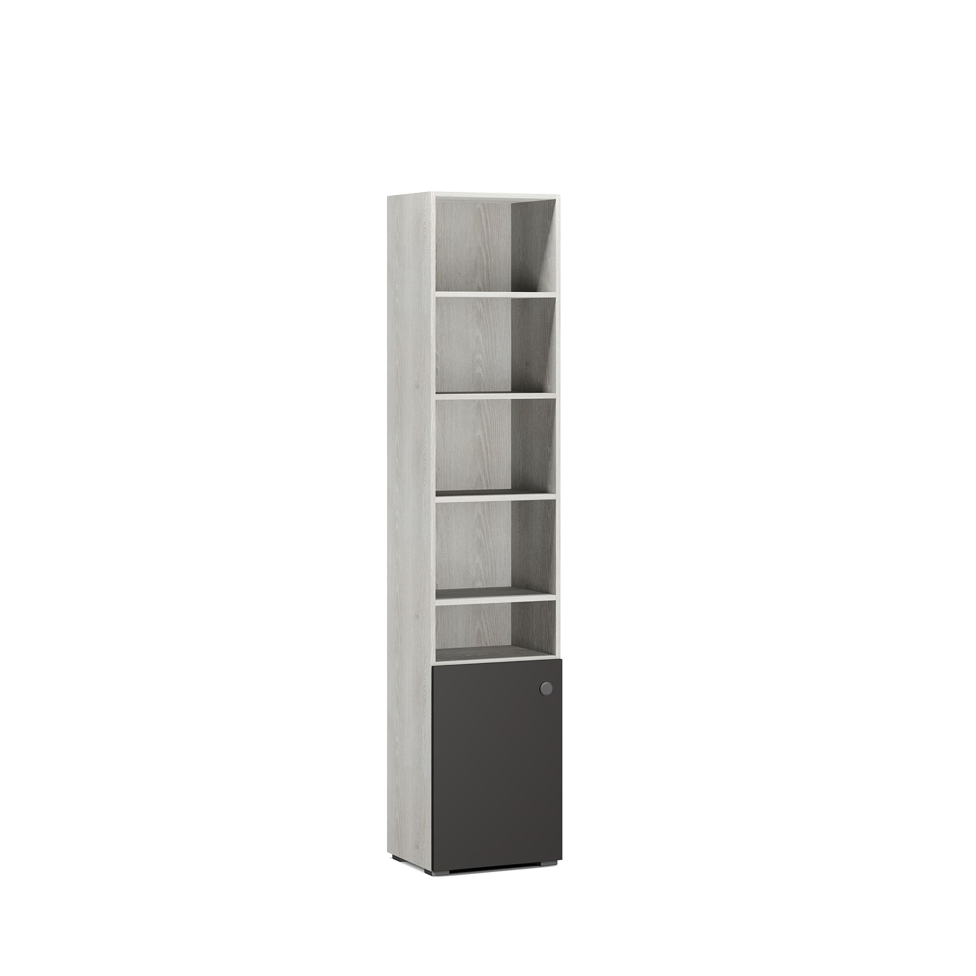 Напольный шкаф EFFECTO оснащен открытыми полками, а также распашным фасадом. Фасады выполнены из МДФ с технологией окутывания без острых кромок. Инновационные петли с доводчиком европейского производства обеспечивают плавное закрывание дверей. Металлическая ручка – черного цвета. Фурнитура скрытого крепления не нарушает эстетическое восприятие мебели.