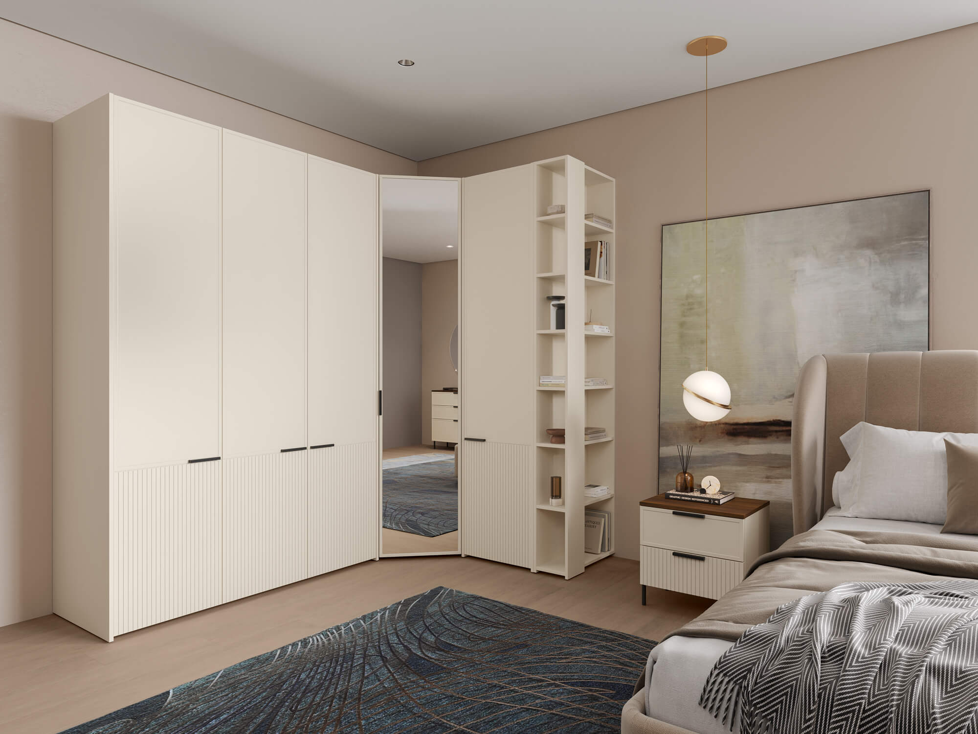 Коллекция включает мебель для спальни, гостиной, прихожей и рабочего кабинета, что позволяет оформить квартиру в едином стиле, создать интерьер для пространства свободной планировки или сделать одно помещение мультифункциональным, объединив в нем элементы различных жилых зон. Дизайн с использованием модулей различной глубины, переходных модулей и антресолей обеспечивает возможность решения любых интерьерных задач с сохранением преемственности и композиционной цельности.