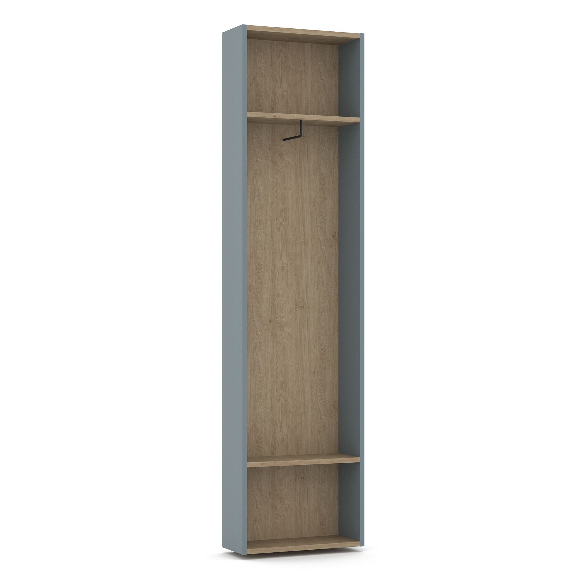 Стеллаж TERAMO оборудован двумя полками из ЛДСП, к верхней из которых крепится штанга для вешалок. Модуль предназначен для использования в качестве завершающего элемента шкафных композиций и может устанавливаться как с левой, так и с правой стороны. Дизайн стеллажа выполнен в сочетании древесной текстуры и монохромной отделки.