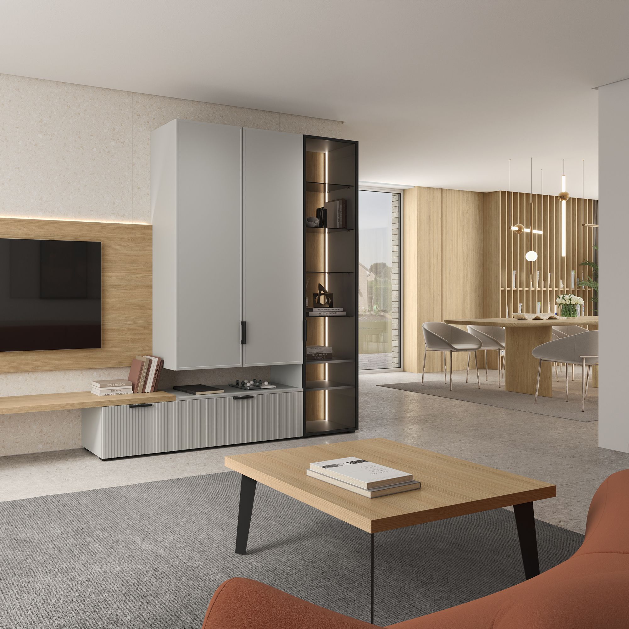 Коллекция включает мебель для спальни, гостиной, прихожей и рабочего кабинета, что позволяет оформить квартиру в едином стиле, создать интерьер для пространства свободной планировки или сделать одно помещение мультифункциональным, объединив в нем элементы различных жилых зон. Дизайн с использованием модулей различной глубины, переходных модулей и антресолей обеспечивает возможность решения любых интерьерных задач с сохранением преемственности и композиционной цельности.