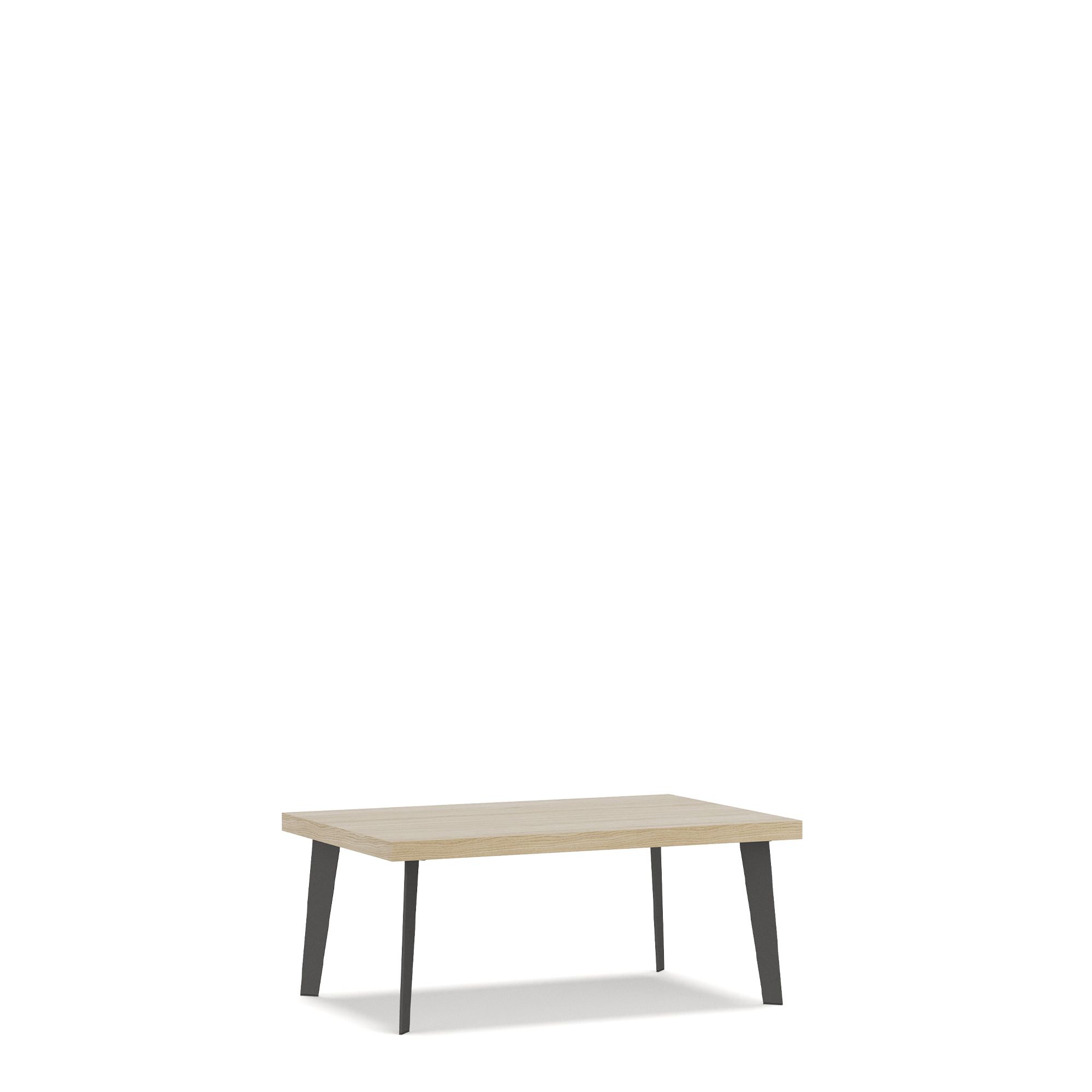 Минималистичный журнальный стол Napoli в отделке древесной текстурой базируется на устойчивых металлических опорах с покрытием черного цвета.