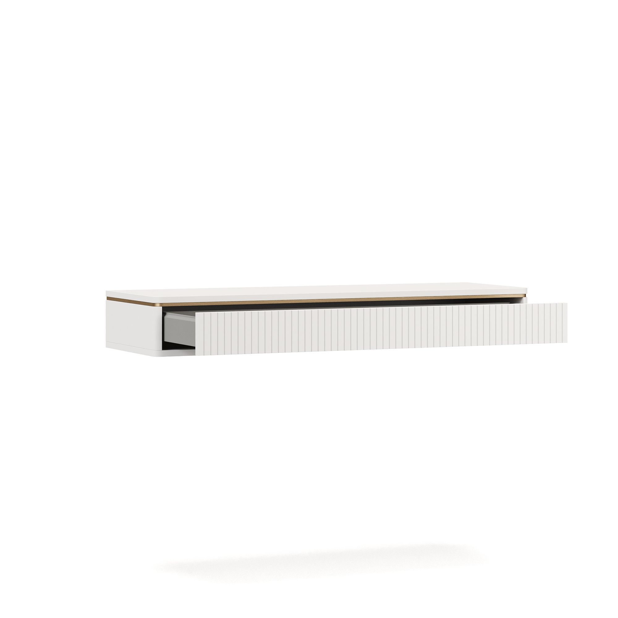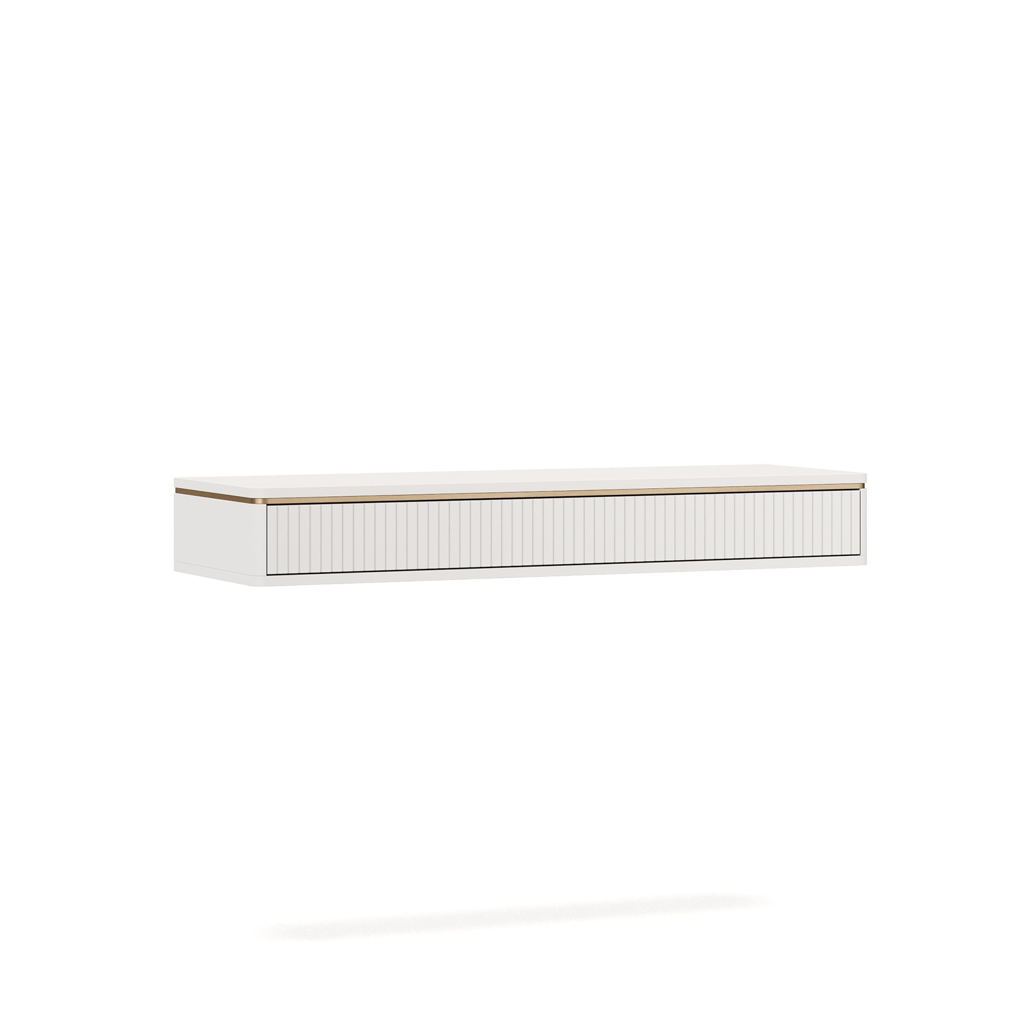 Стол-консоль TIARA предназначен для навешивания на стену и может выполнять функцию бьюти-зоны, компактного рабочего места или полки для размещения декора. Максимально допустимая распределенная нагрузка – 15 кг. Стол оснащен выдвижным ящиком с системой открывания Push-to-open. Фасад модели выполнен в отделке эмалью и декорирован вертикальной фрезеровкой.