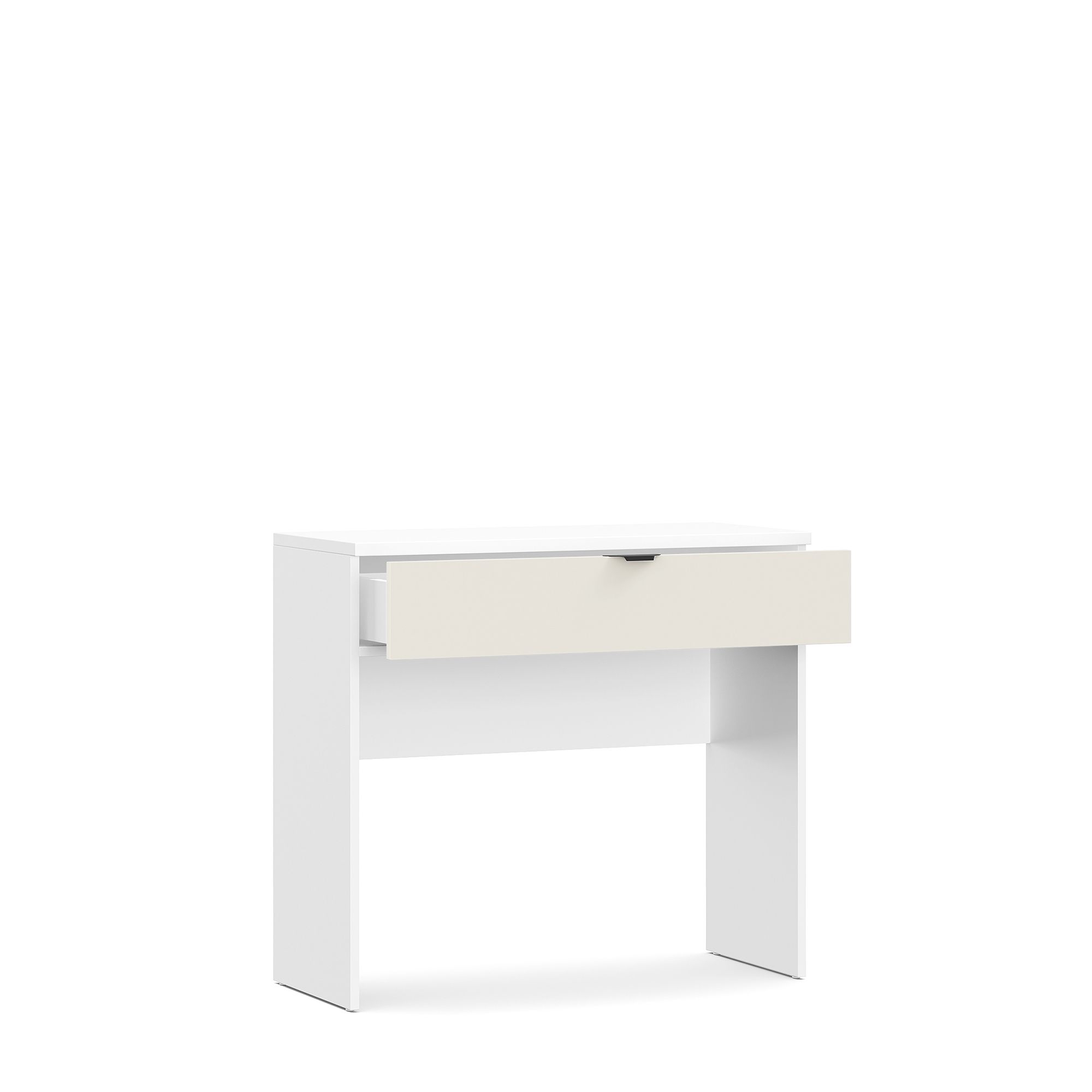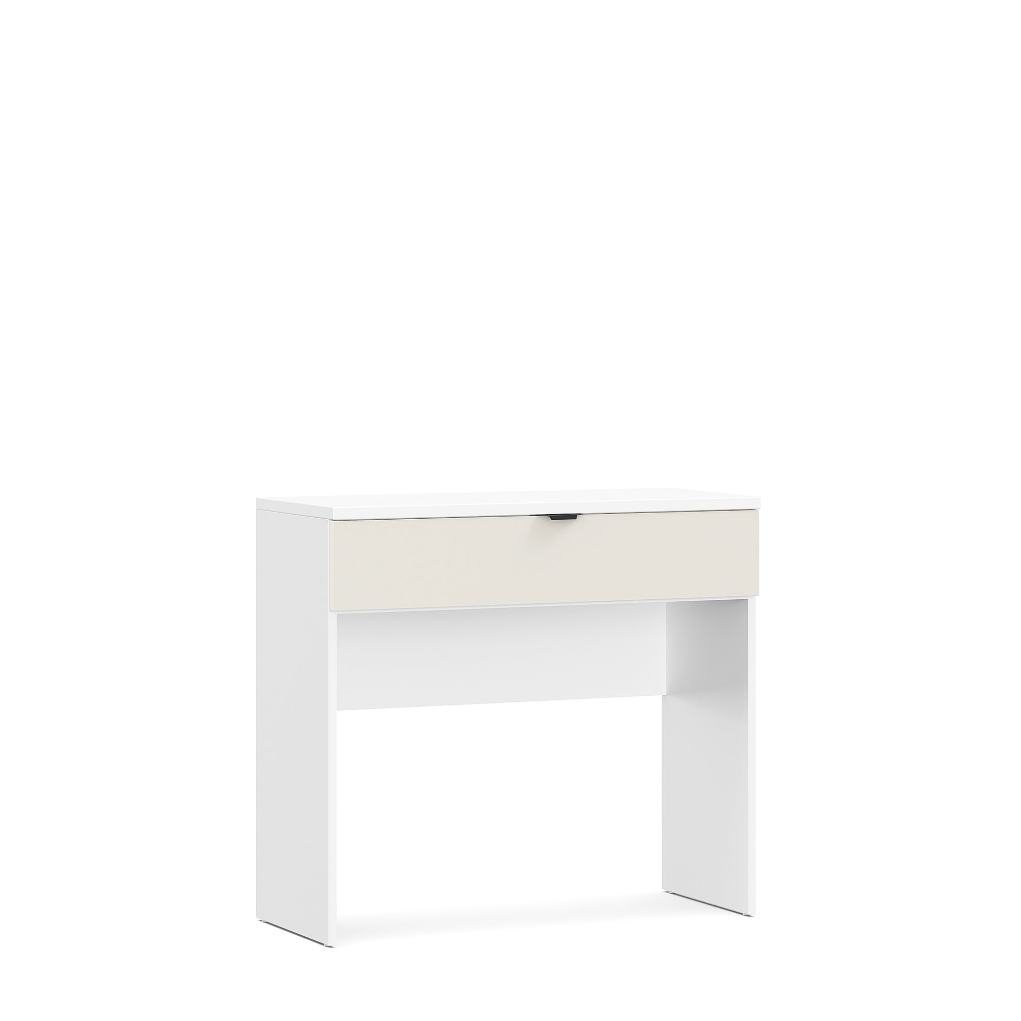 Туалетный столик, мини-мастерская или рабочее место в спальне? И то, и другое, и третье! Навесное зеркало (заказывается отдельно) превращает компактный стол TURIN в удобный уголок для ухода за собой, а в его выдвижном ящике легко поместятся ноутбук и материалы для творчества. Универсальный дизайн позволяет вписать модель в любой интерьер и делает стол многофункциональным. На выбор предлагается несколько вариантов ручек, благодаря чему можно придать мебели индивидуальный стиль.