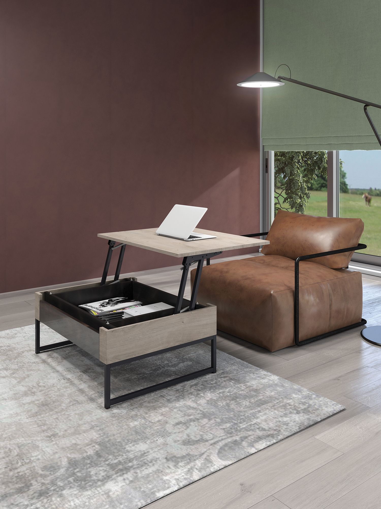 Журнальный стол BOSTON представляет собой модель-трансформер. Крышка стола поднимается, открывая доступ к содержимому вместительного ящика. В разложенном состоянии стол удобно использоват для работы за ноутбуком, сидя на диване.