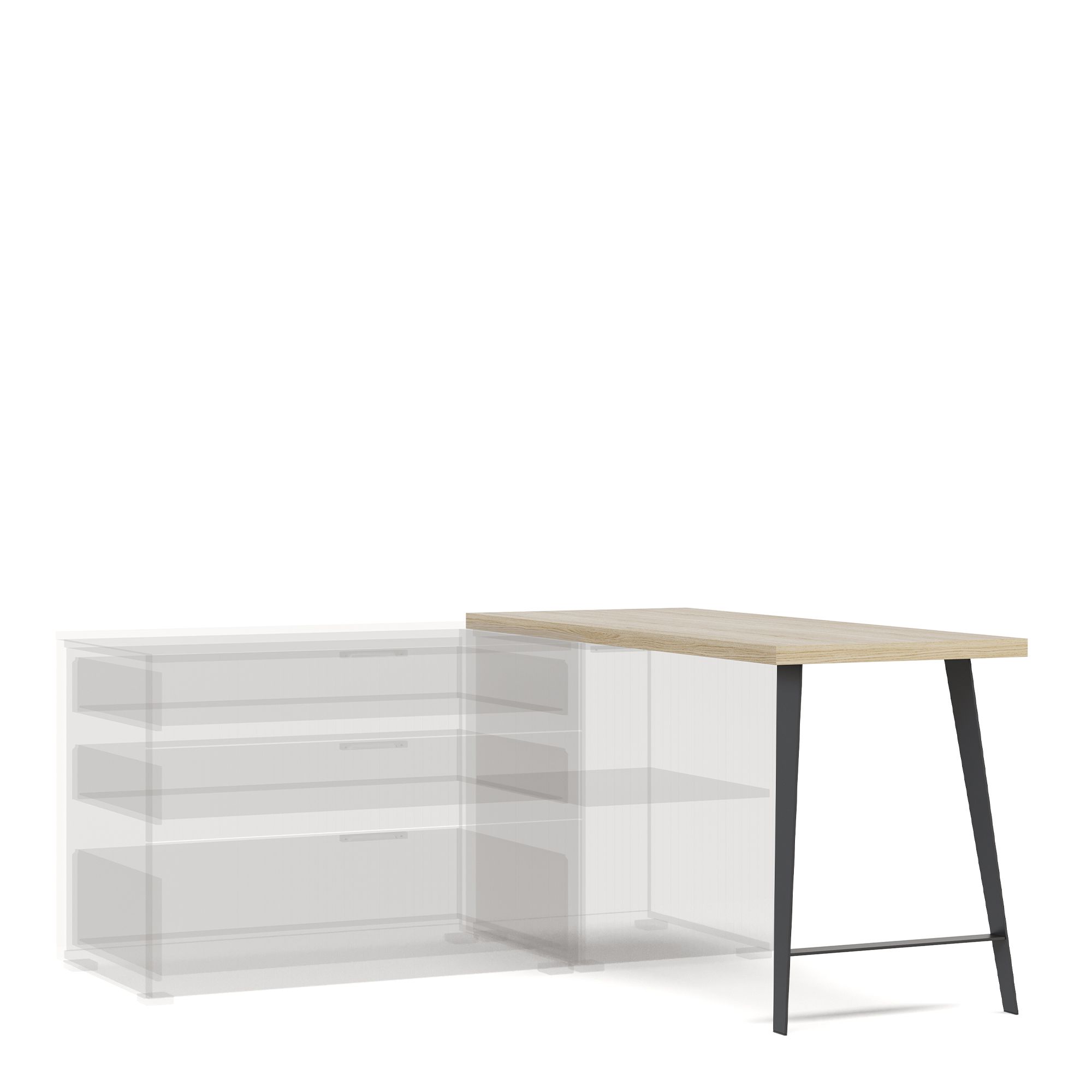 Продуманная система интерьерного проектирования включает приставные элементы, которые позволяют повысить функциональность мебельной композиции и придать ей стильный современный вид. Предусмотрены два варианта приставных столов. Более компактный предназначен для использования с тумбами высотой 33,8 см (устанавливается параллельно), стол на высоких опорах может комбинироваться с тумбами и комодами и располагаться как вдоль, так и поперек.