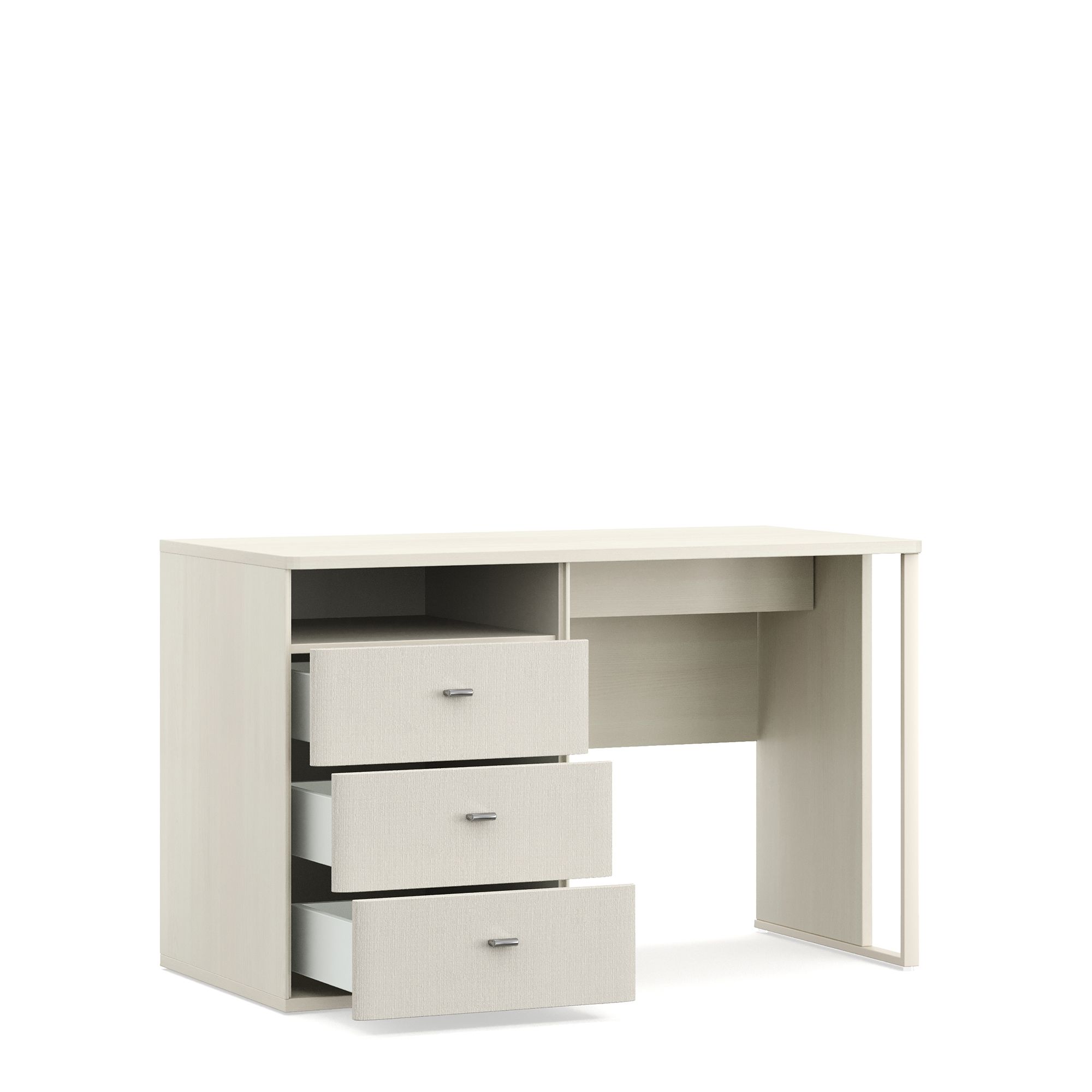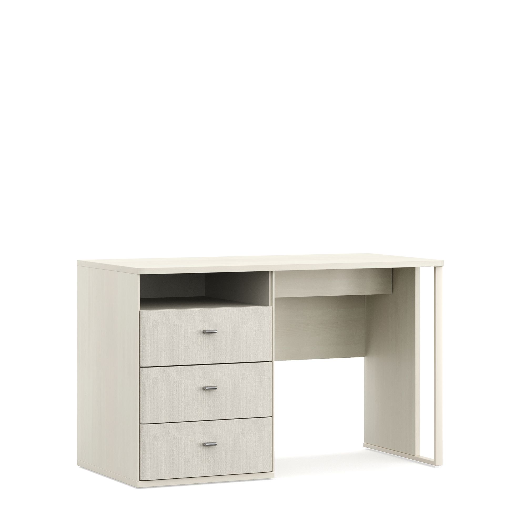 Письменный стол ELEGANTE оснащен тумбой с тремя выдвижными ящиками. Модель очень пригодится, если вам нужно обустроить эргономичное рабочее место школьника, домашний офис или мини-мастерскую. На выбор предлагается несколько вариантов ручек, благодаря чему можно придать мебели индивидуальный стиль.
