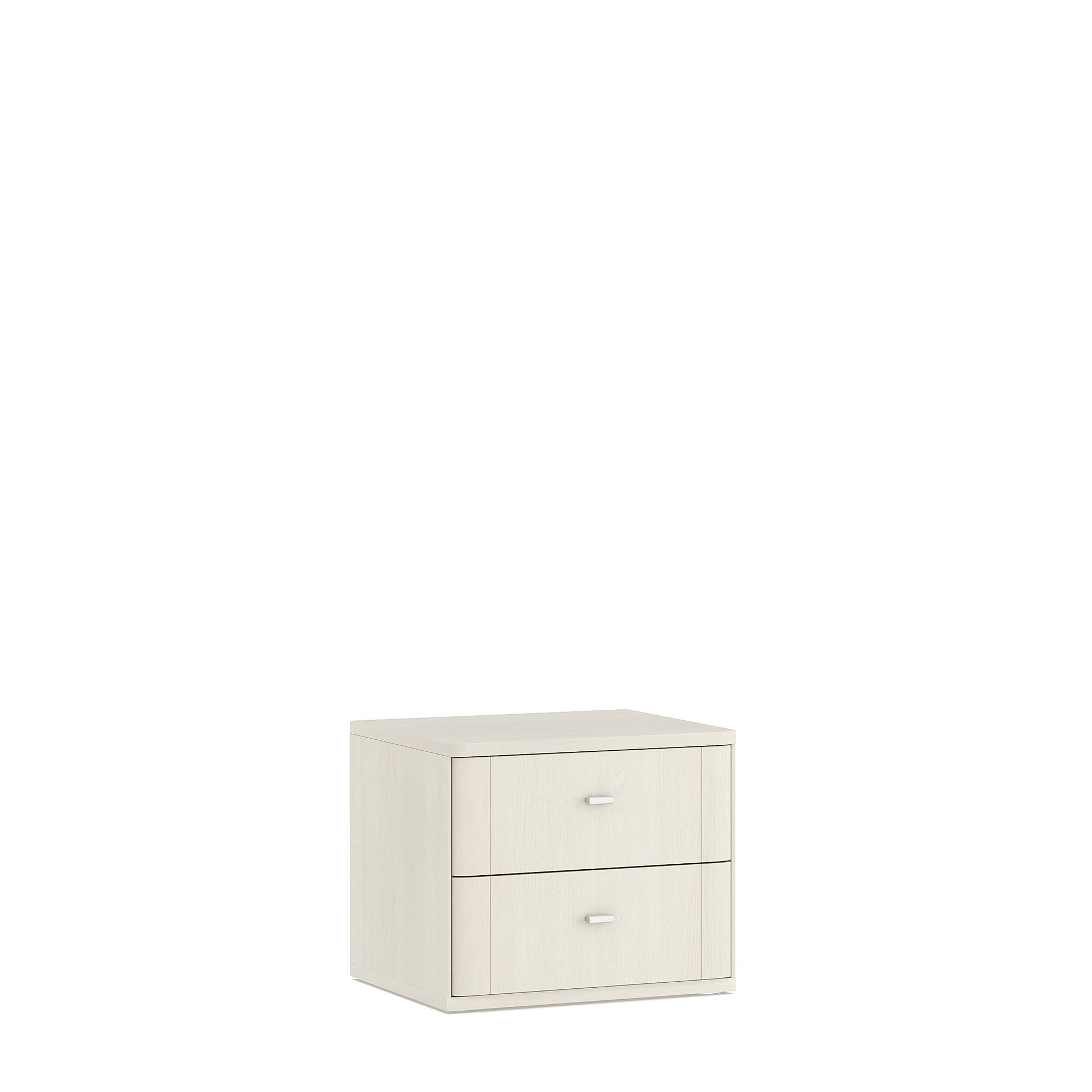 Прикроватная тумба ELEGANTE оснащена двумя выдвижными ящиками с плавными, скругленными гранями фасадов, которые делают взаимодействие с мебелью особенно приятным. В производстве фасадов использована технология окутывания, позволяющая получить детали без кромок.