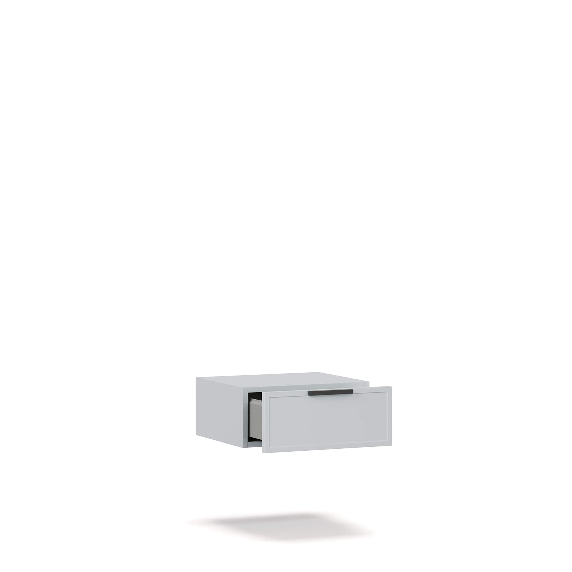 Навесная прикроватная тумба NAPOLI оснащена выдвижным ящиком с внутренней текстурой Шенилл. Максимальная распределенная нагрузка на элемент составляет 15 кг. В стоимость изделия включена крышка в тон фасада (возможна замена на крышку в древесной текстуре). Использование тумбы без этого элемента дизайном не предусмотрено.