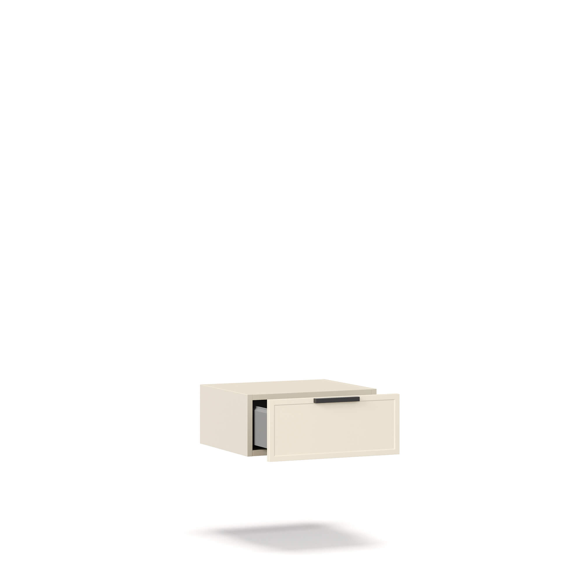 Навесная прикроватная тумба NAPOLI оснащена выдвижным ящиком с внутренней текстурой Шенилл. Максимальная распределенная нагрузка на элемент составляет 15 кг. В стоимость изделия включена крышка в тон фасада (возможна замена на крышку в древесной текстуре). Использование тумбы без этого элемента дизайном не предусмотрено.