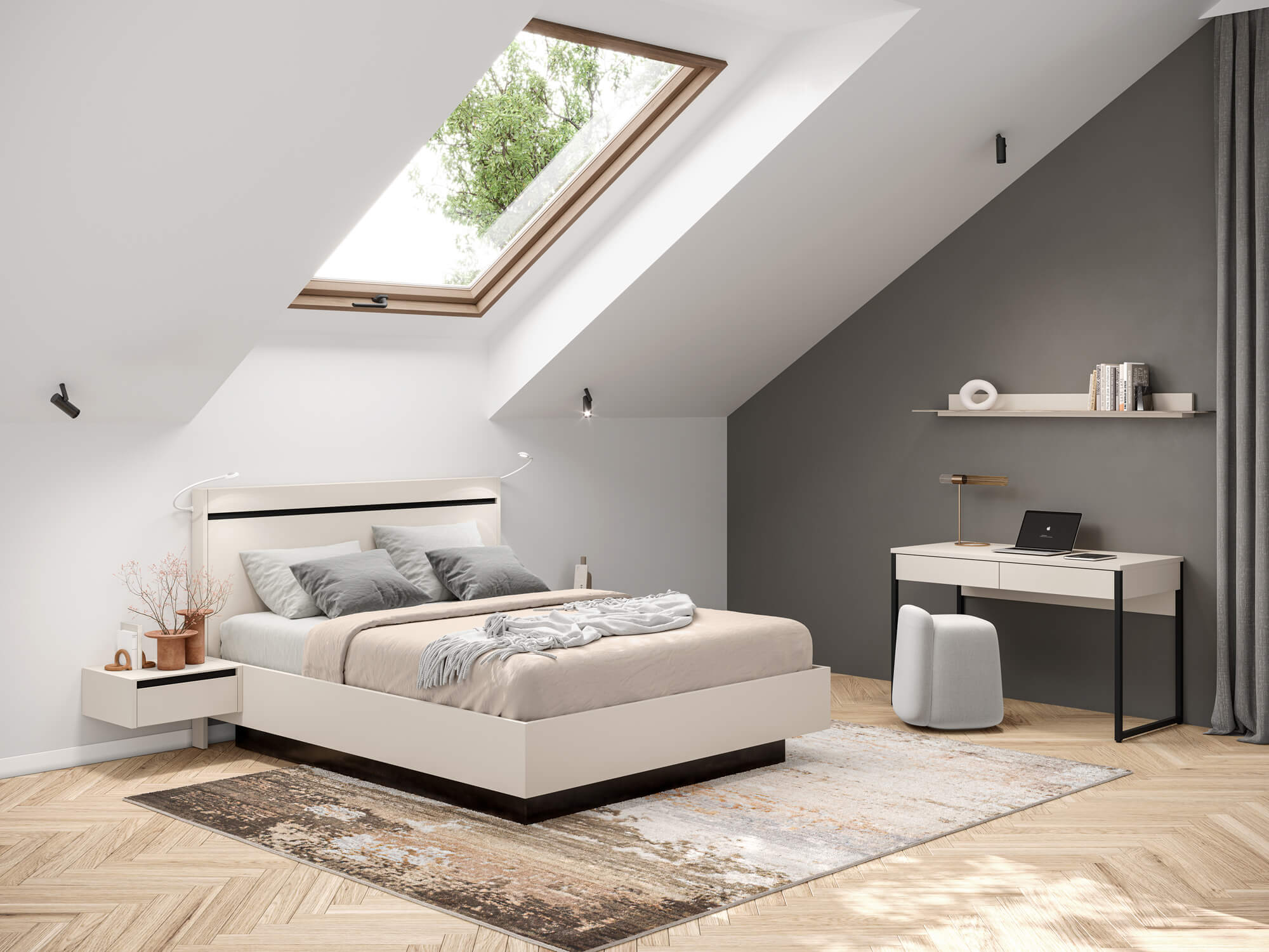 Тактильная матовая поверхность делает взаимодействие с мебелью особенно приятным, а отсутствие лицевой фурнитуры подчеркивает красоту лаконичного дизайна.