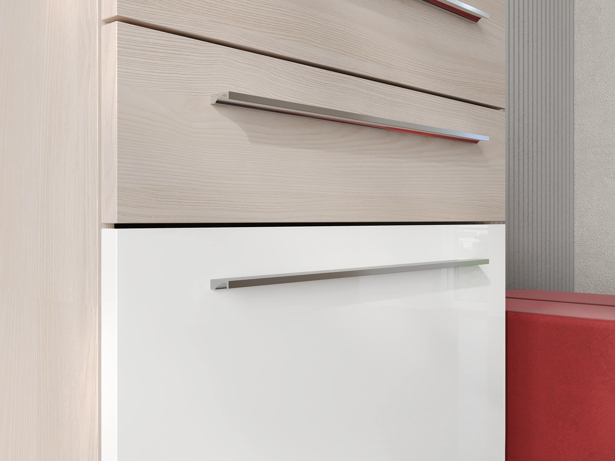 В коллекции используются стильные и изящные металлические ручки в отделке хром-глянец. Их качественное покрытие обладает высокой стойкостью и сохраняет безупречный внешний вид даже после активного использования на протяжении многих лет.