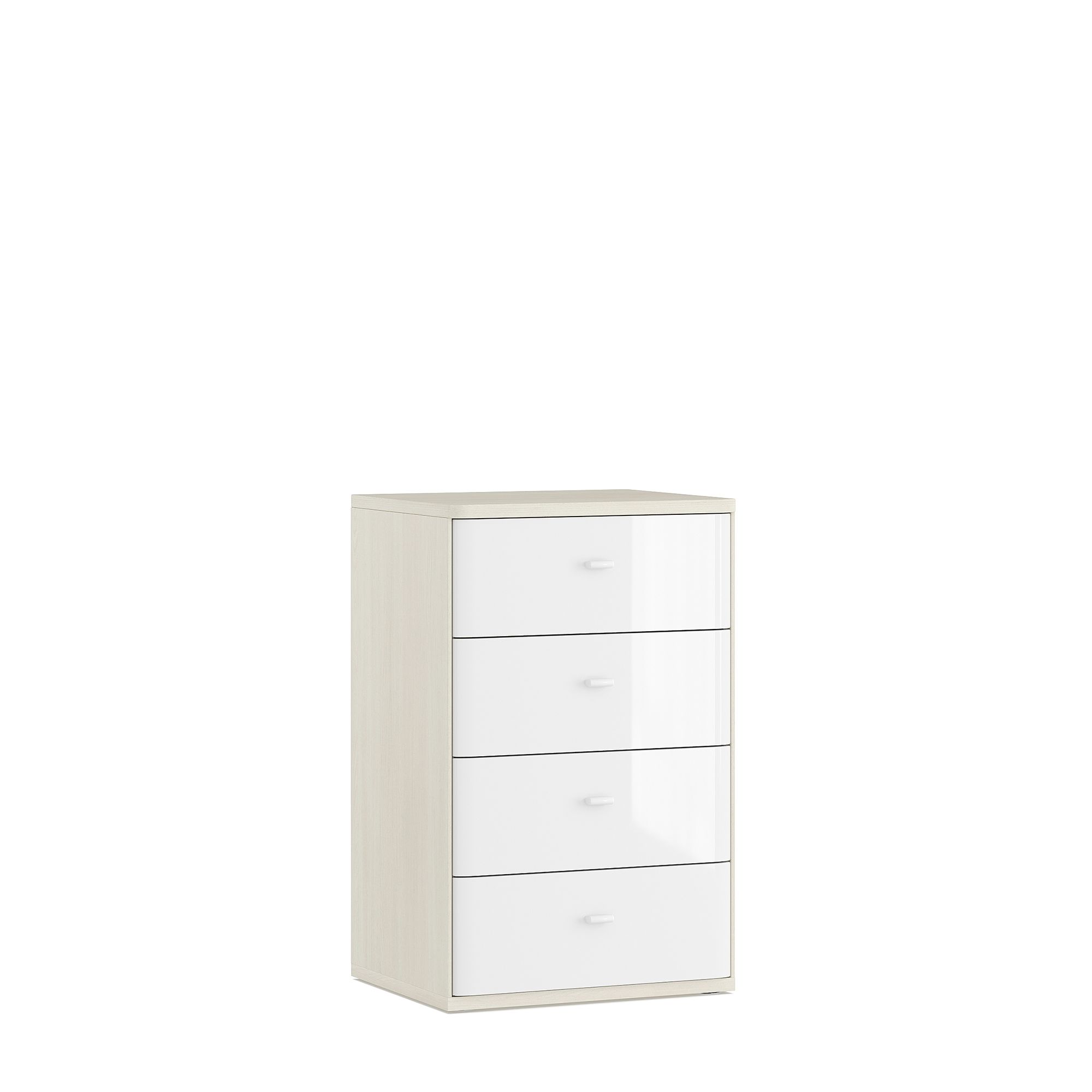 Тумба ELEGANTE оснащена четырьмя выдвижными ящиками с плавными, скругленными гранями фасадов, которые делают взаимодействие с мебелью особенно приятным. В производстве фасадов использована технология окутывания, позволяющая получить детали без кромок.