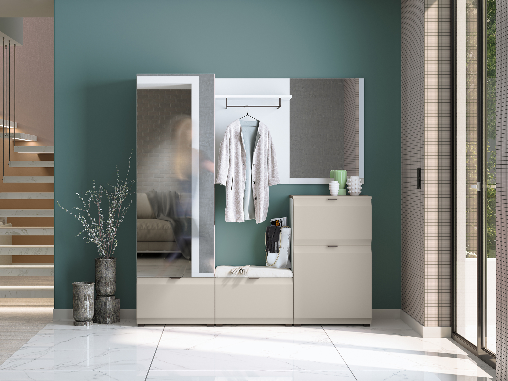 Коллекция включает мебель для гостиных, спален, молодежных комнат и прихожих, что обеспечивает свободу интерьерного проектирования, позволяя комбинировать в одном помещении элементы различных жилых зон. Например, разместить платяной шкаф в просторной прихожей или организовать комфортное рабочее место в гостиной.