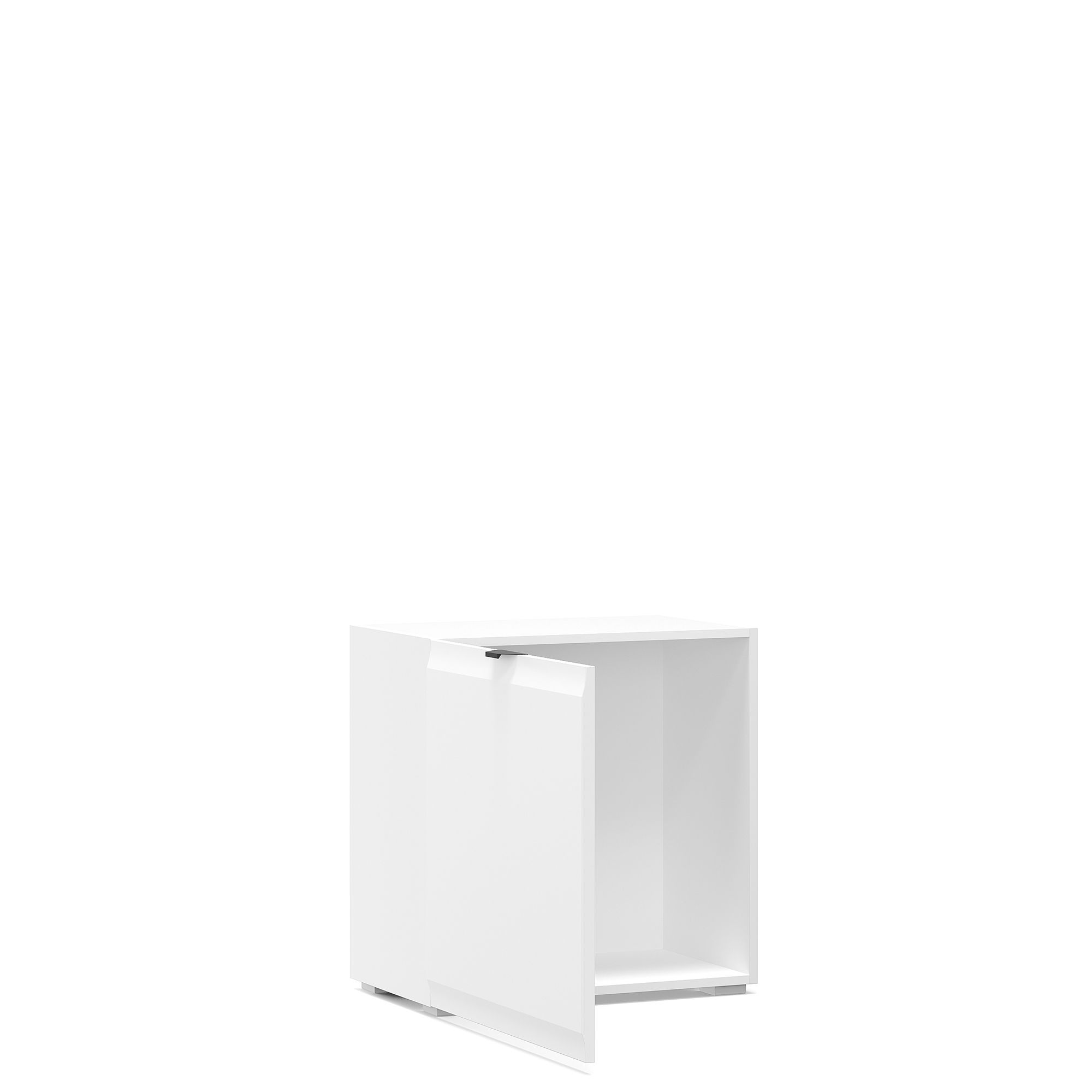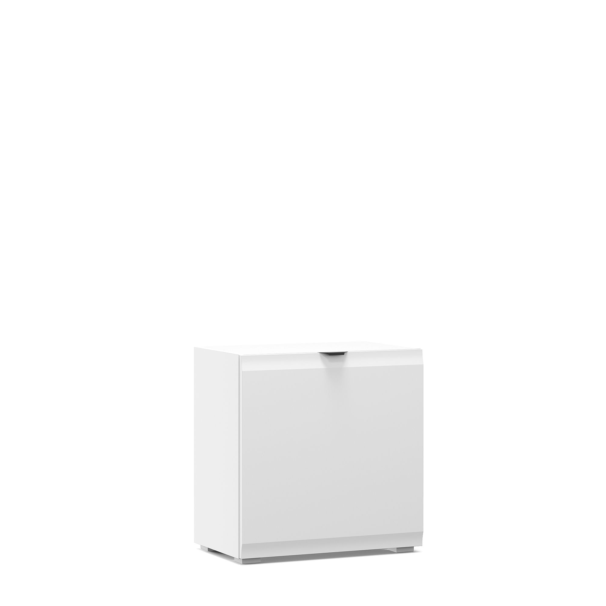 За распашным фасадом тумбы TURIN, которая может иметь как правое, так и левое открывание, располагается полка из ДСП. Крышка в тон фасада входит в стоимость. На выбор предлагается несколько вариантов ручек и опор, благодаря чему можно придать мебели индивидуальный стиль.