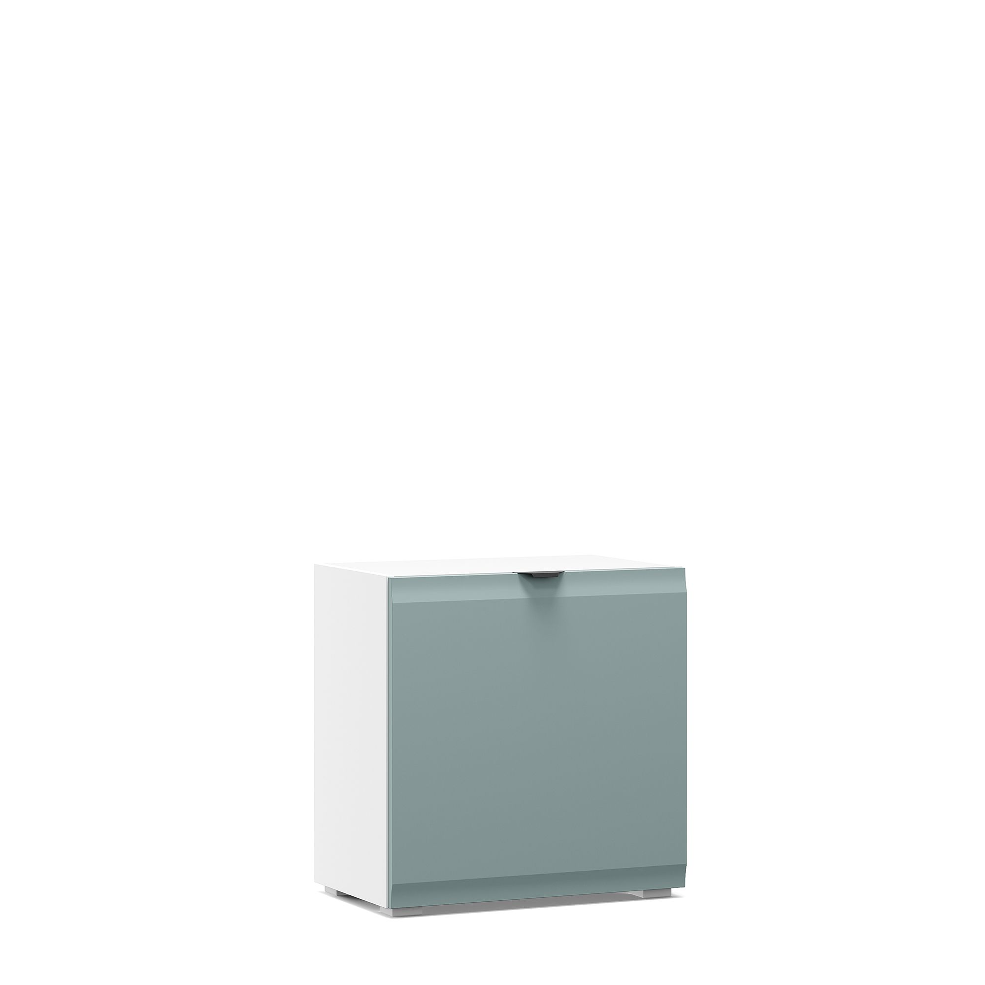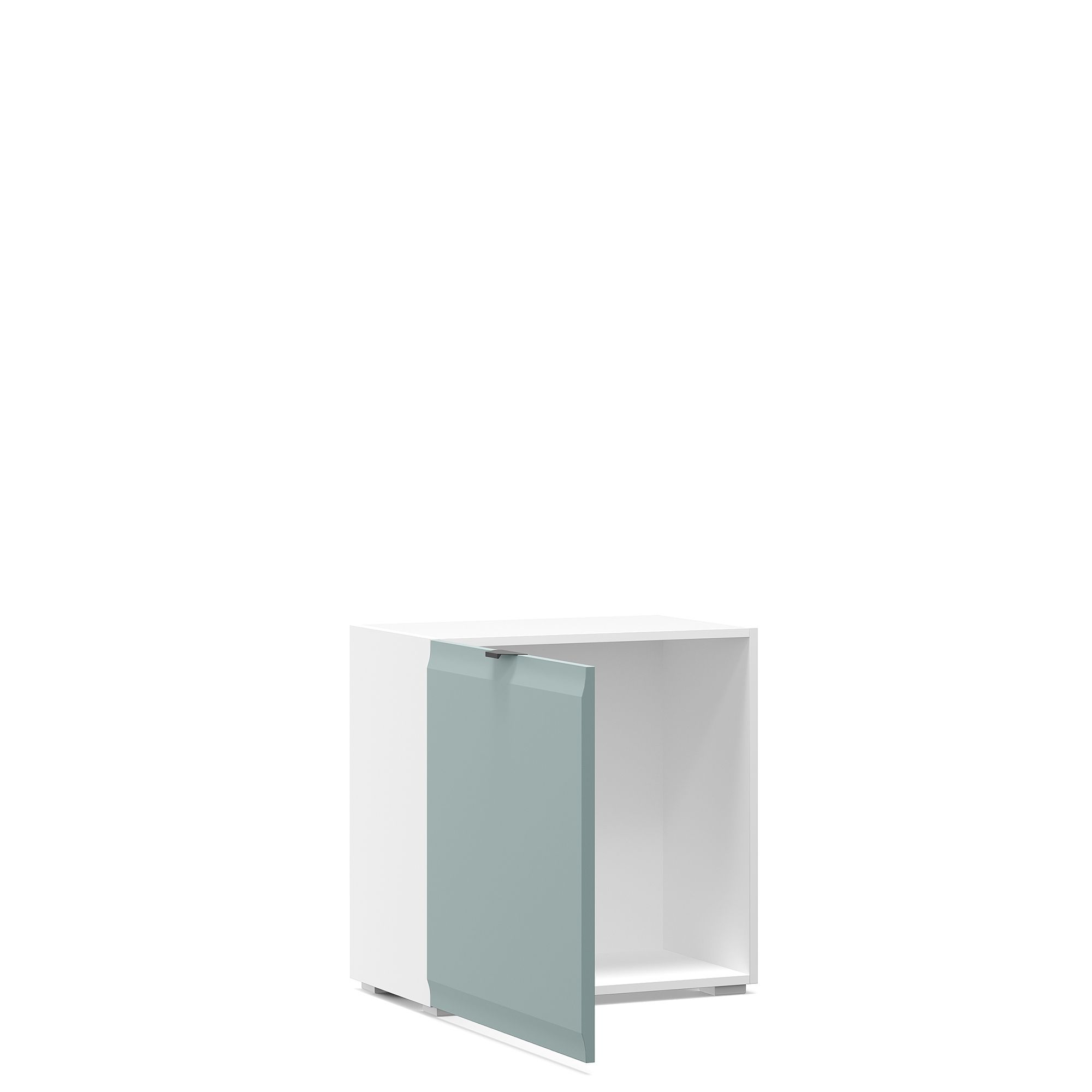 За распашным фасадом тумбы TURIN, которая может иметь как правое, так и левое открывание, располагается полка из ДСП. Крышка в тон фасада входит в стоимость. На выбор предлагается несколько вариантов ручек и опор, благодаря чему можно придать мебели индивидуальный стиль.