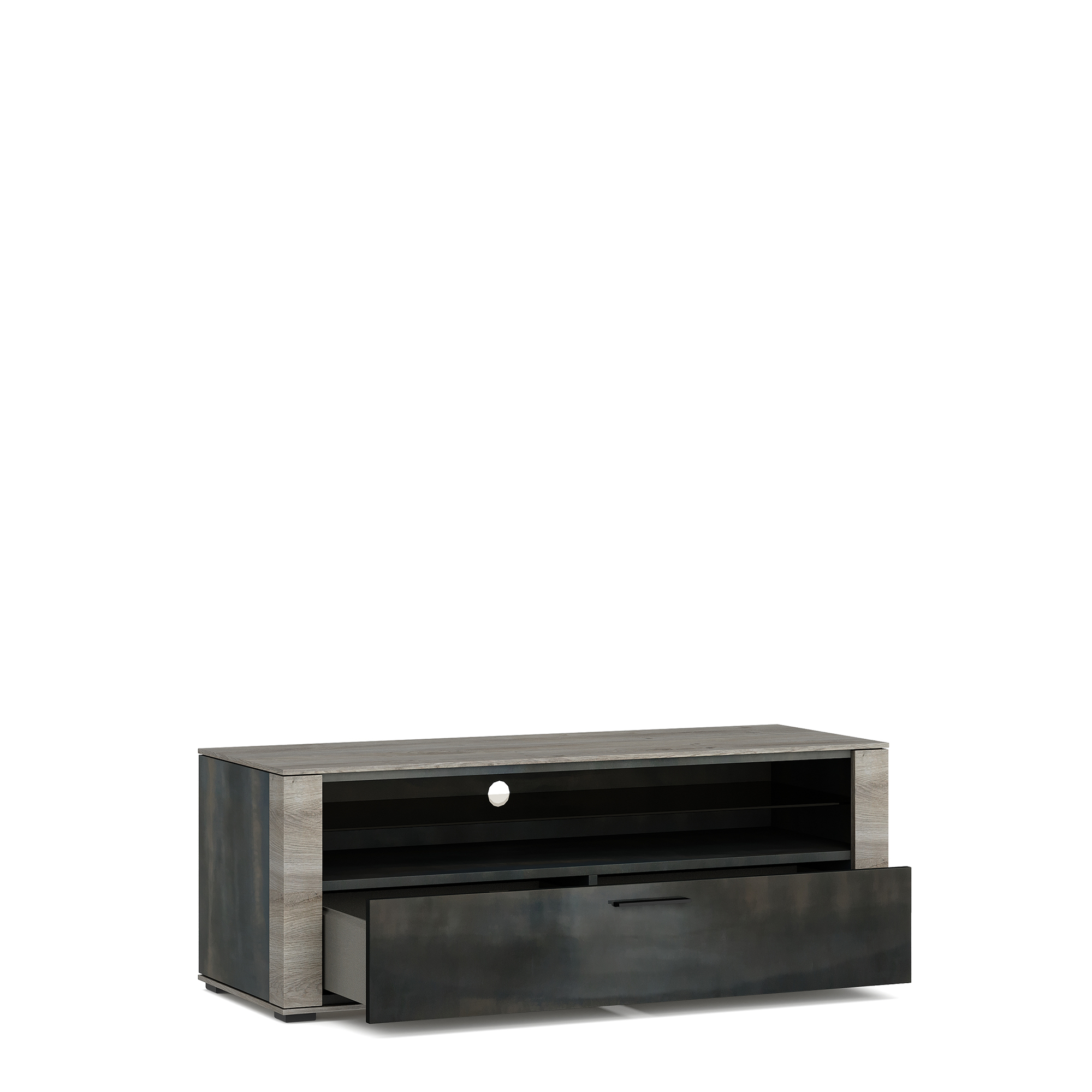 ТВ-тумба BOSTON оснащена вместительным выдвижным ящиком с фасадом в дизайнерской текстуре Galaxy и нишей под размещение аппаратуры. В стандартной комплектации модель оснащается опорами высотой 1,8 см. Возможна установка тумбы на металлические опоры высотой 11,5 см из черного металла (заказываются отдельно). При желании тумбу можно дополнить подставкой под ТВ из закаленного бронзированного стекла (нагрузка до 18 кг).
