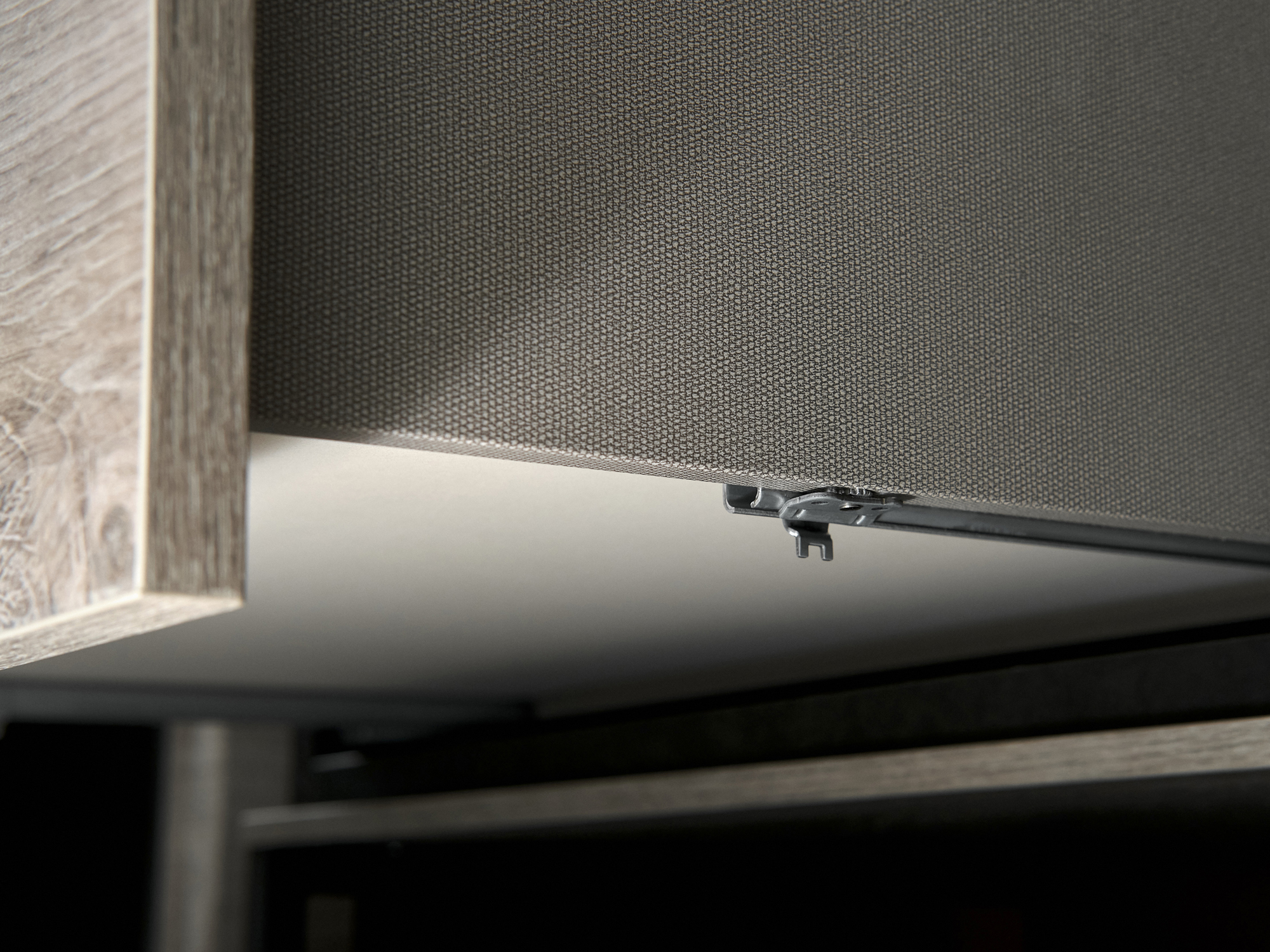 Внутреннее пространство выдвижных ящиков выполнено в отделке текстурой Шенилл, которая в точности воспроизводит рисунок плетения натуральной ткани и применяется, как правило, исключительно в европейских премиальных коллекциях. Эксклюзивность дизайна подчеркнута изящными верхними гранями боковых стенок, выполненными с применением специальной технологии фрезерования.