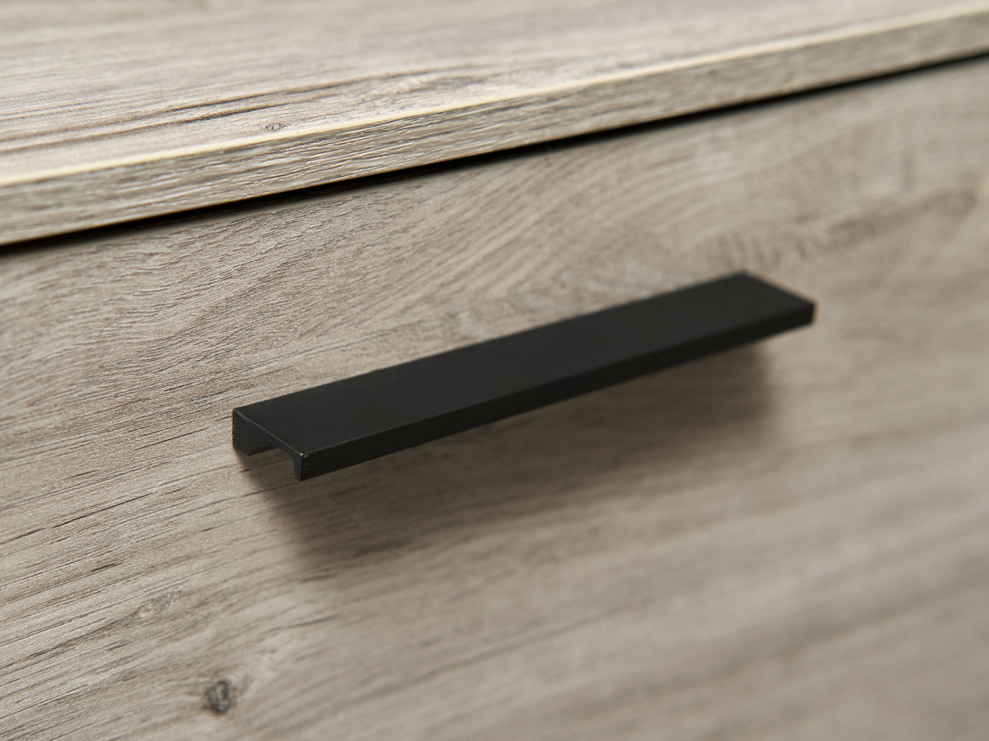 В качестве лицевой фурнитуры используются черные металлические ручки с гальваническим покрытием. Такая технология отделки придает изделиям износостойкость и высокие антикоррозийные свойства, поэтому ручки сохраняют свой безупречный внешний вид даже спустя многие годы.