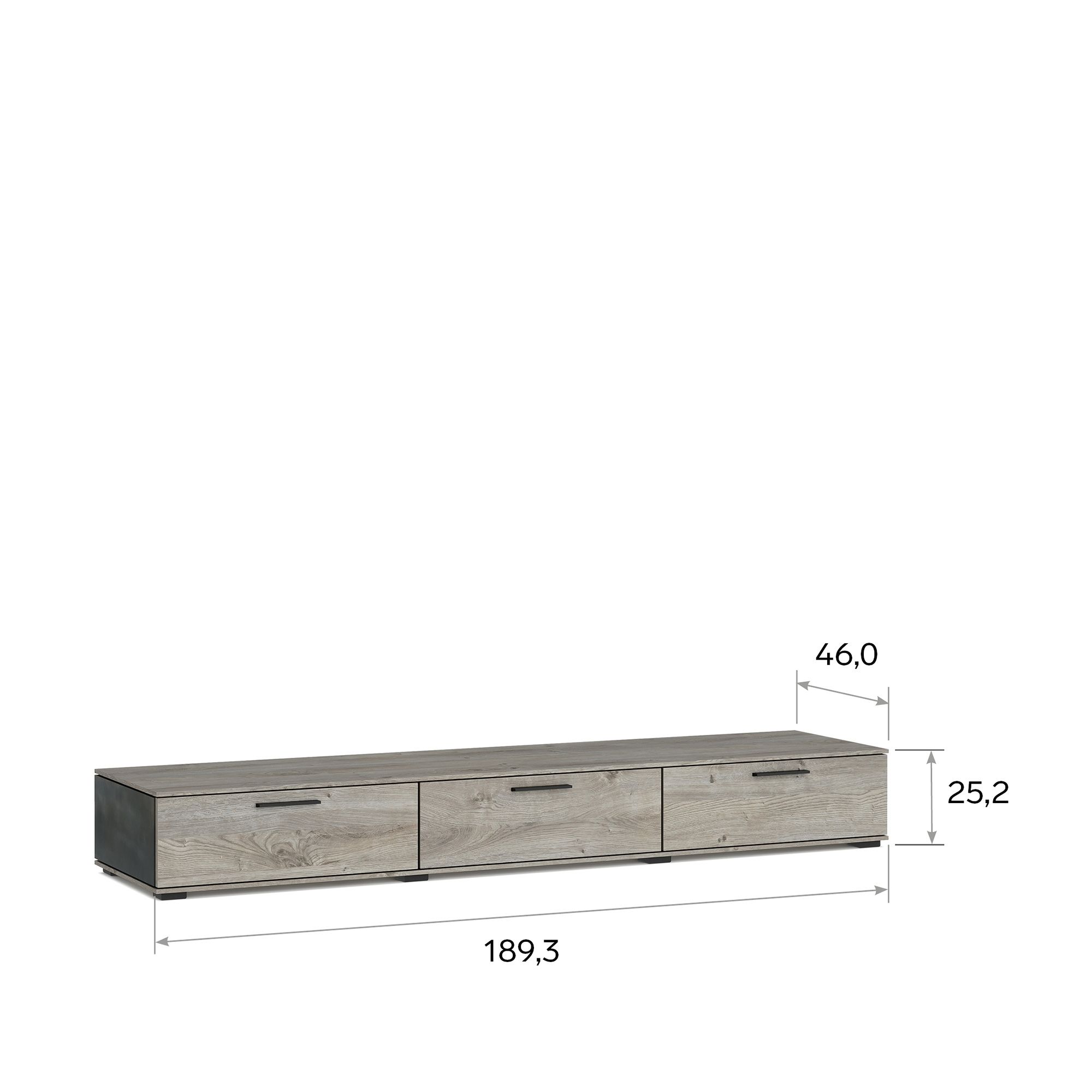 ТВ-тумба BOSTON оснащена тремя вместительными выдвижными ящиками. В стандартной комплектации модель оснащается опорами высотой 1,8 см. Возможна установка тумбы на металлические опоры высотой 11,5 см из черного металла (заказываются отдельно).