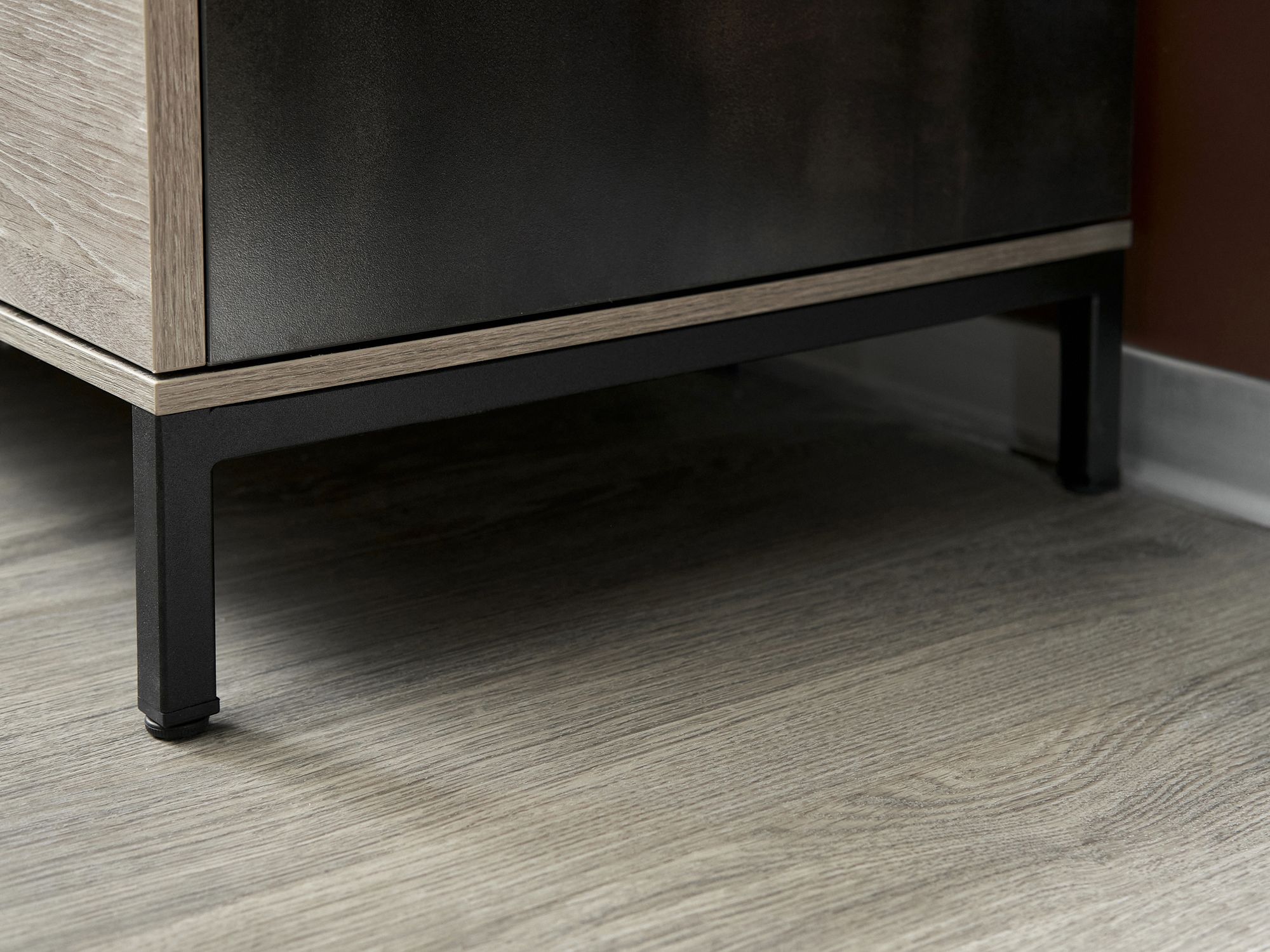 Опоры с регулировкой высоты в диапазоне до 10 мм позволяют выставить мебель идеально ровно, что обеспечивает равномерное распределение нагрузки и увеличивает срок службы. Кроме того, опоры делают мебель визуально более легкой, создавая ощущение парящих элементов.