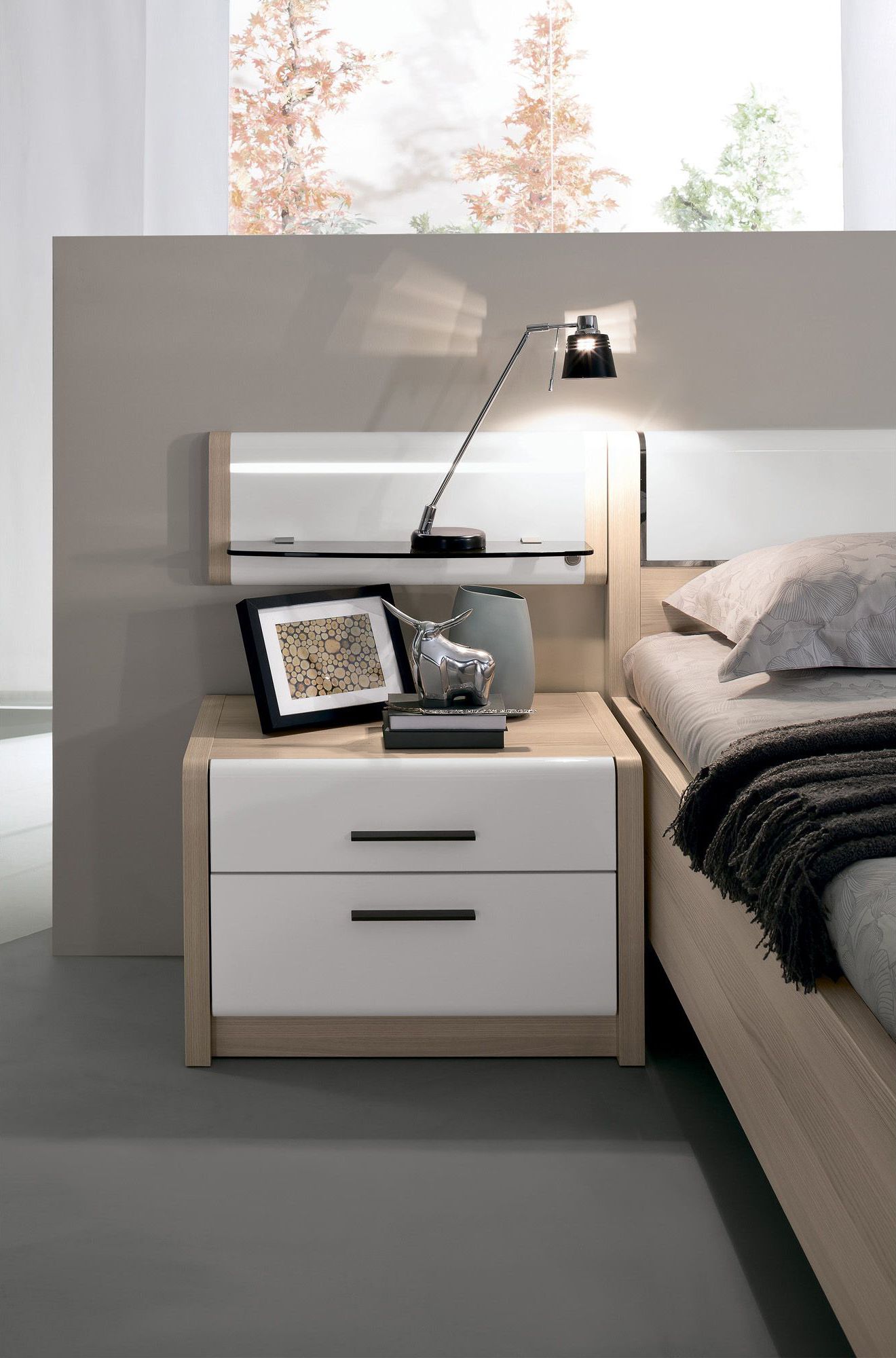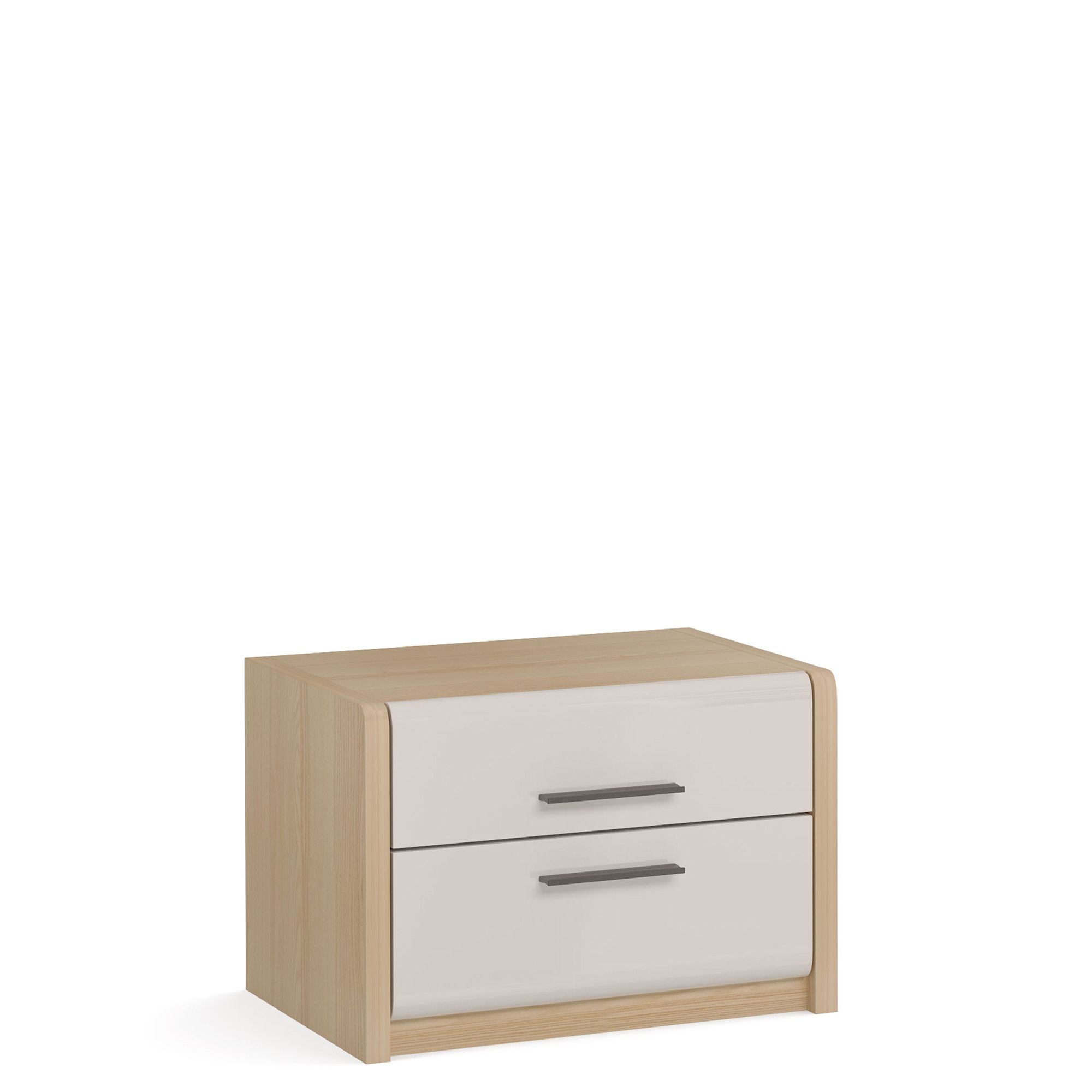 Прикроватная тумба ESTE оснащена двумя выдвижными ящиками с плавными, скругленными гранями фасадов, которые делают взаимодействие с мебелью особенно приятным. В производстве фасадов использована технология окутывания, позволяющая получить детали без кромок.