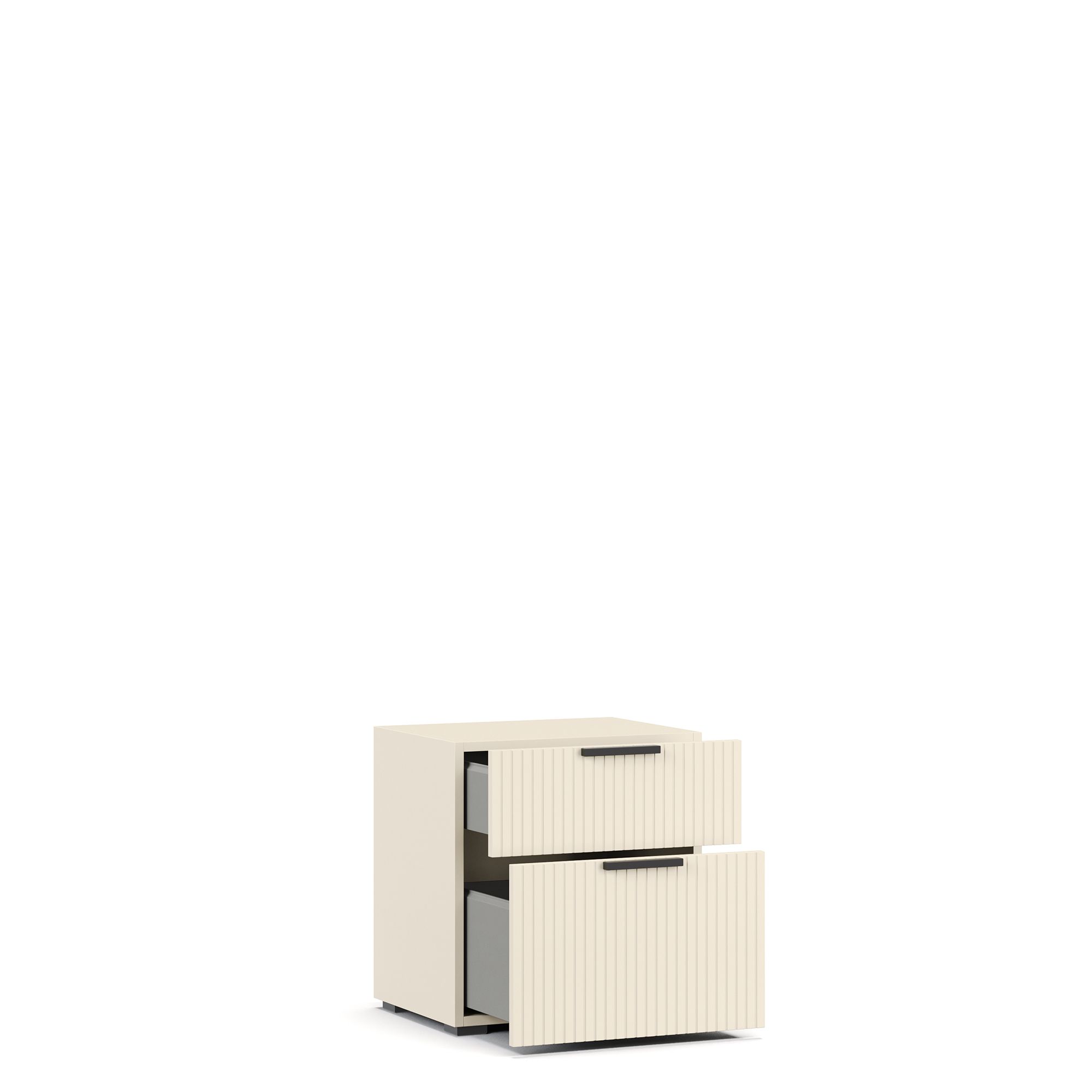 Выдвижные ящики с изящной скошенной гранью боковины выполнены в отделке текстурой Шенилл, в точности воспроизводящей рисунок плетения натуральной ткани.