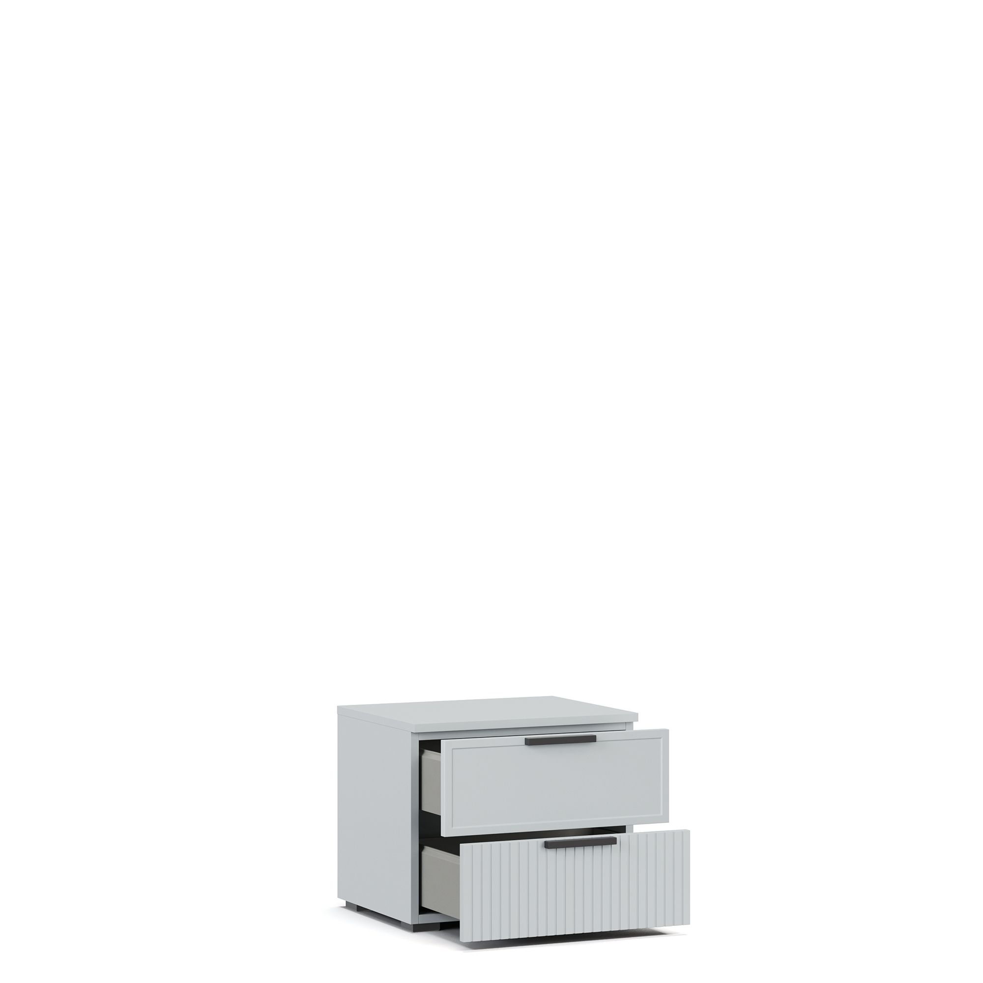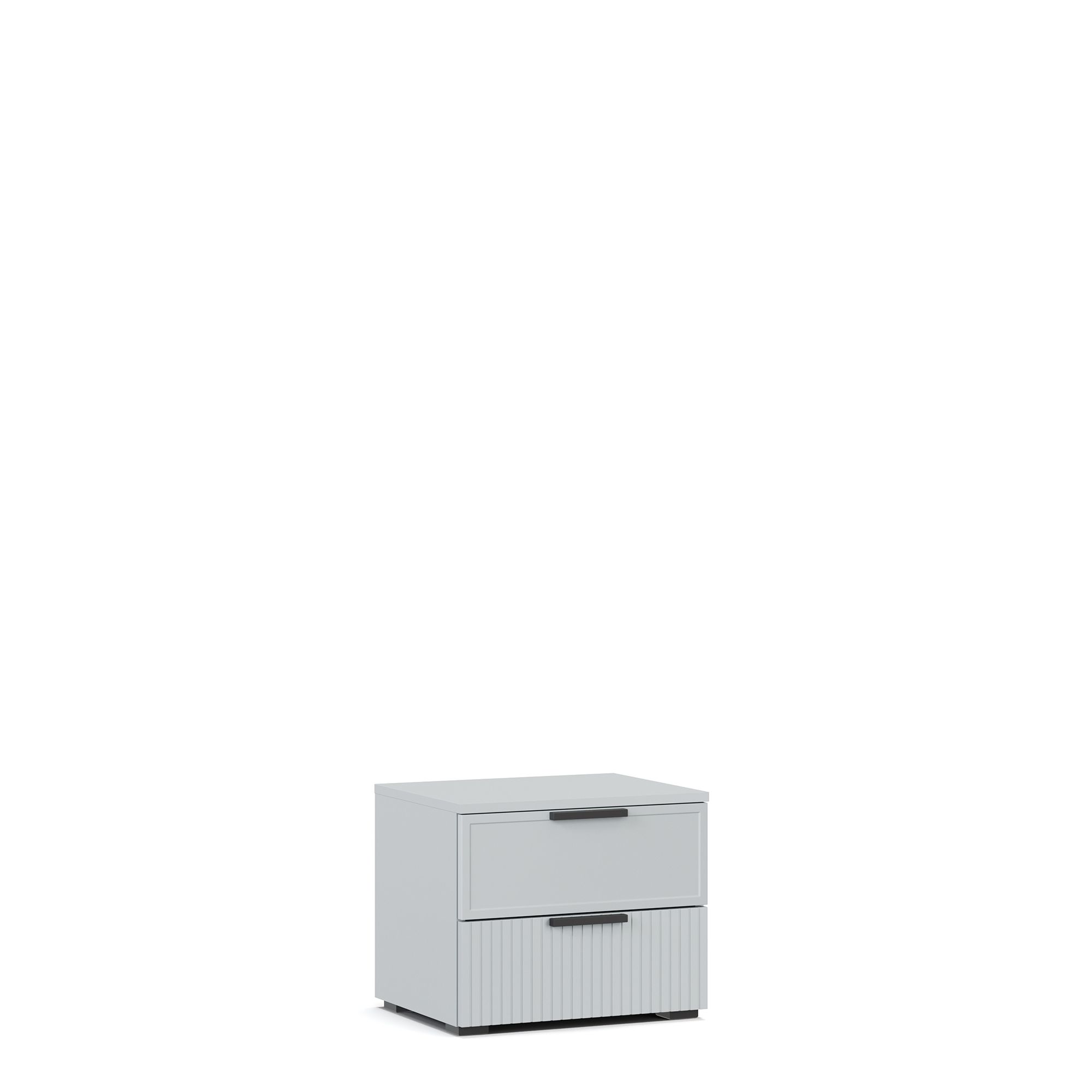Прикроватная тумба NAPOLI с крышкой в отделке древесной текстурой (входит в комплектацию модели) оснащена двумя выдвижными ящиками. Фасад одного из декорирован тонкой рамкой, второго – вертикальной фрезеровкой. Внутренняя отделка ящиков выполнена в текстуре Шенилл. В качестве опции предлагается установка тумбы на опоры высотой 12 см (заказываются отдельно).