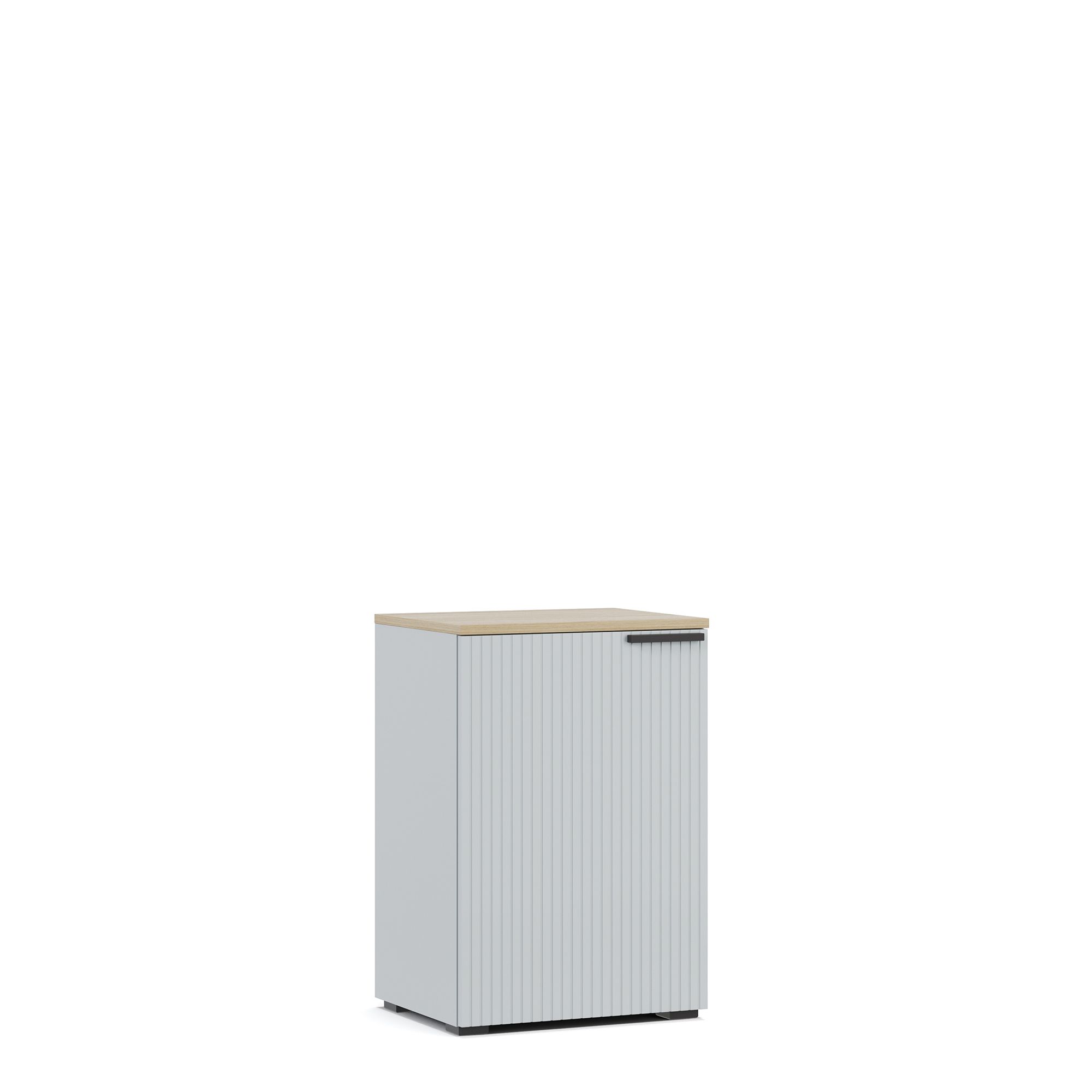 Прикроватная тумба NAPOLI с крышкой в отделке древесной текстурой (входит в комплектацию модели) оснащена распашным фасадом в отделке вертикальной фрезеровкой. Возможно как левое, так и правое открывание фасада. За фасадом располагается полка из ЛДСП. В качестве опции предлагается установка тумбы на опоры высотой 12 см (заказываются отдельно).