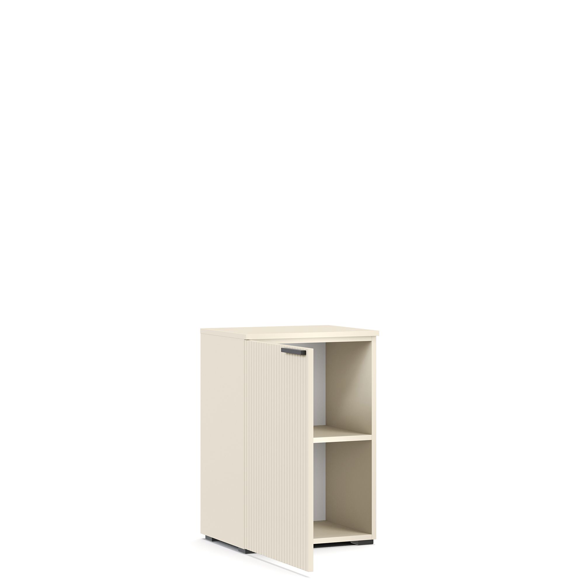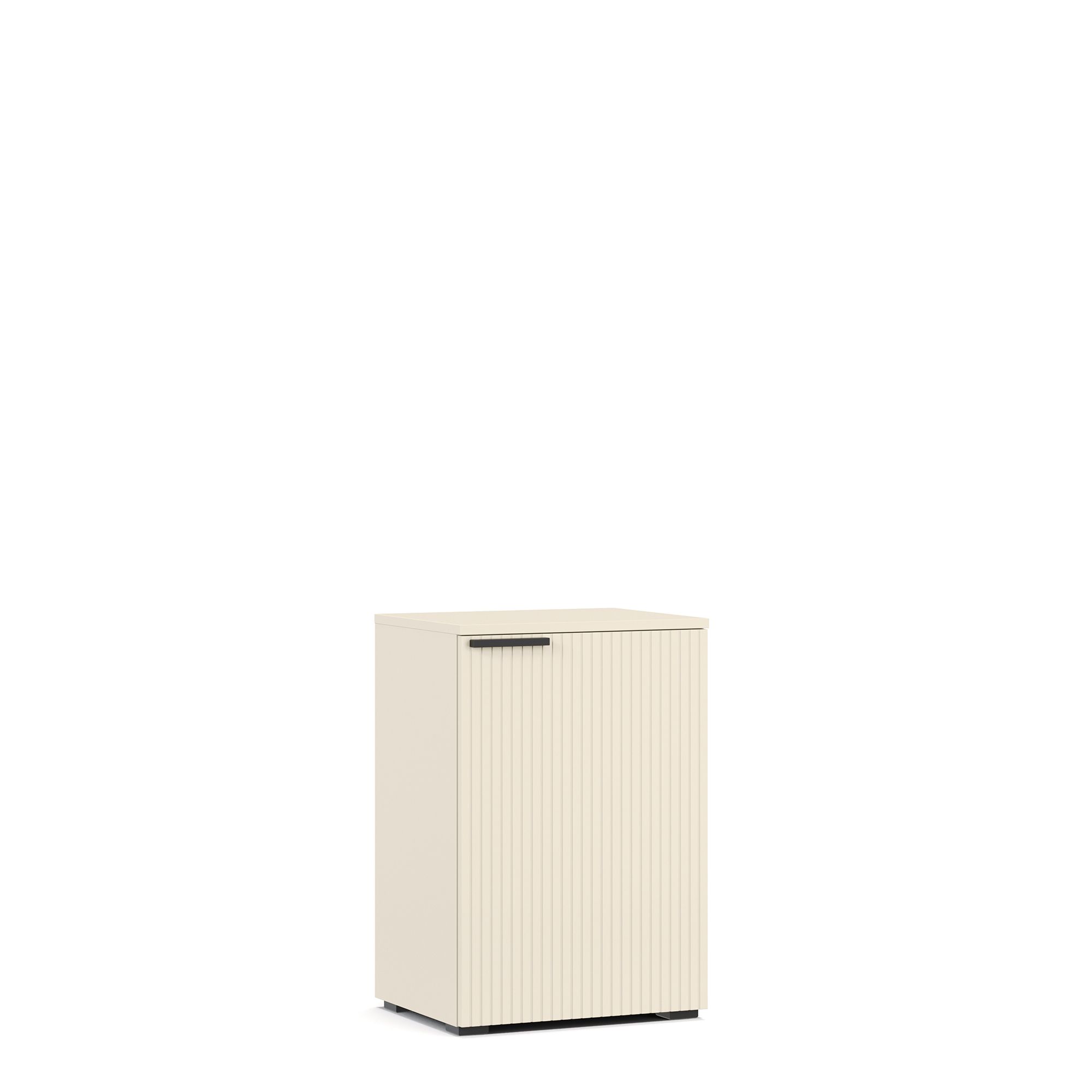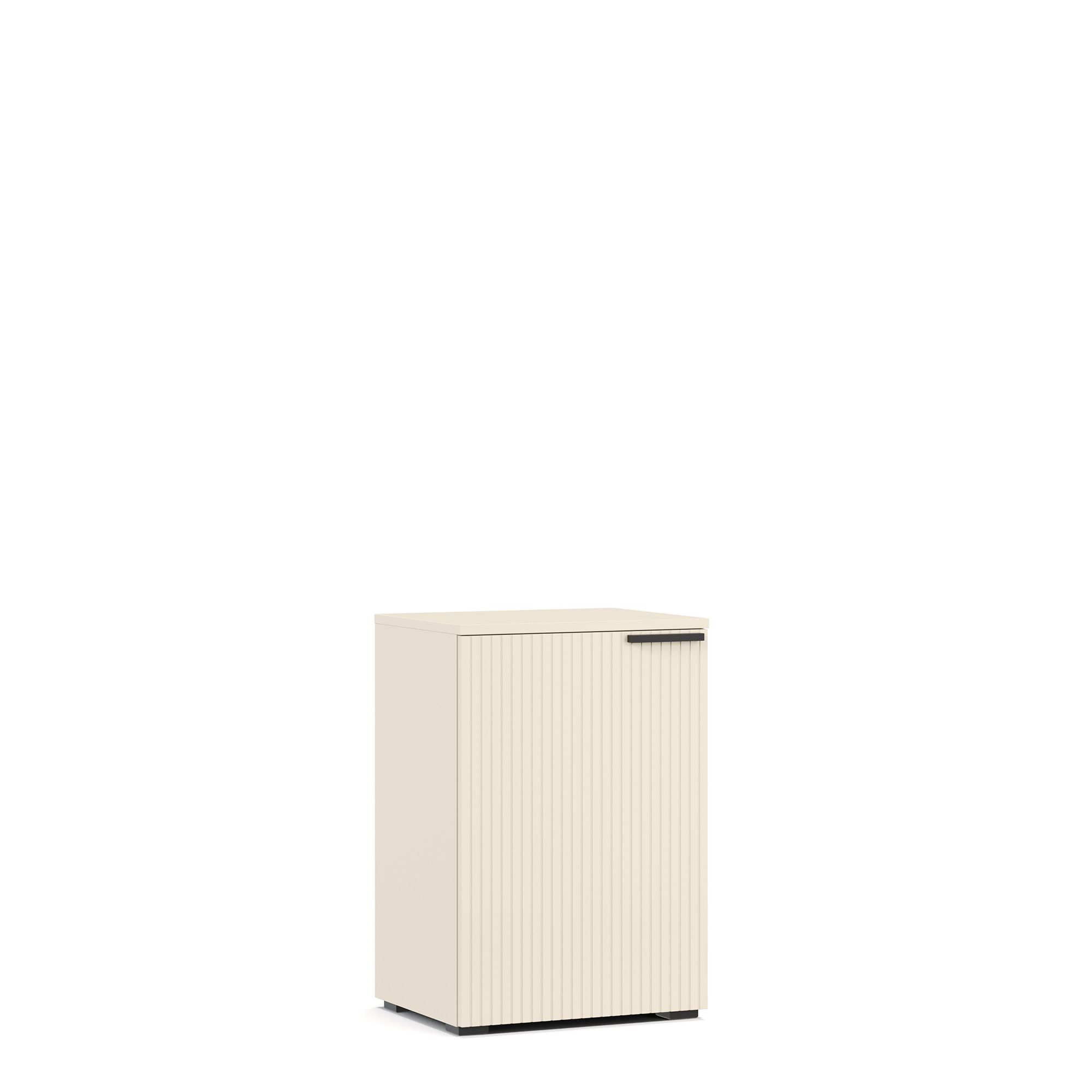 Прикроватная тумба NAPOLI с крышкой в отделке древесной текстурой (входит в комплектацию модели) оснащена распашным фасадом в отделке вертикальной фрезеровкой. Возможно как левое, так и правое открывание фасада. За фасадом располагается полка из ЛДСП. В качестве опции предлагается установка тумбы на опоры высотой 12 см (заказываются отдельно).