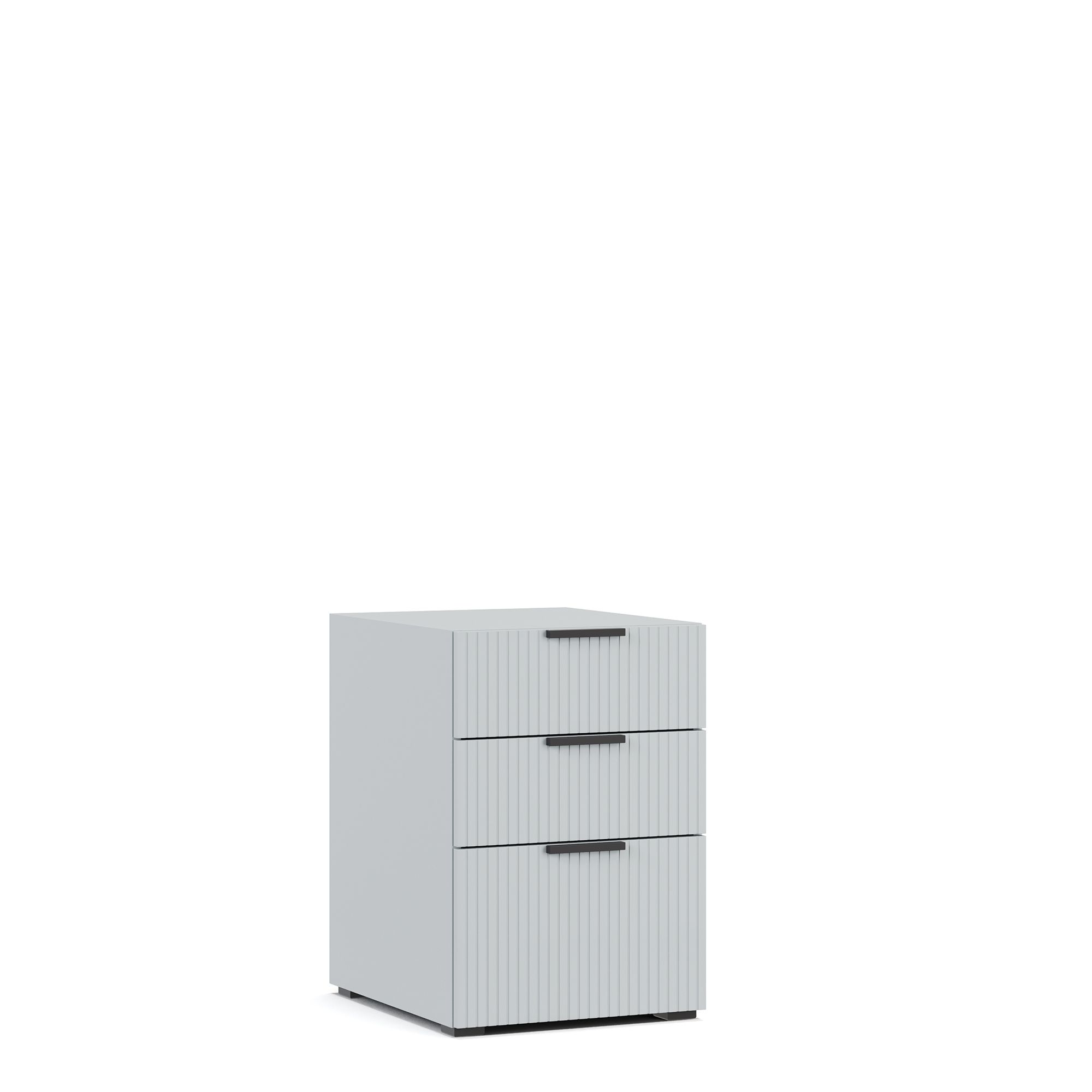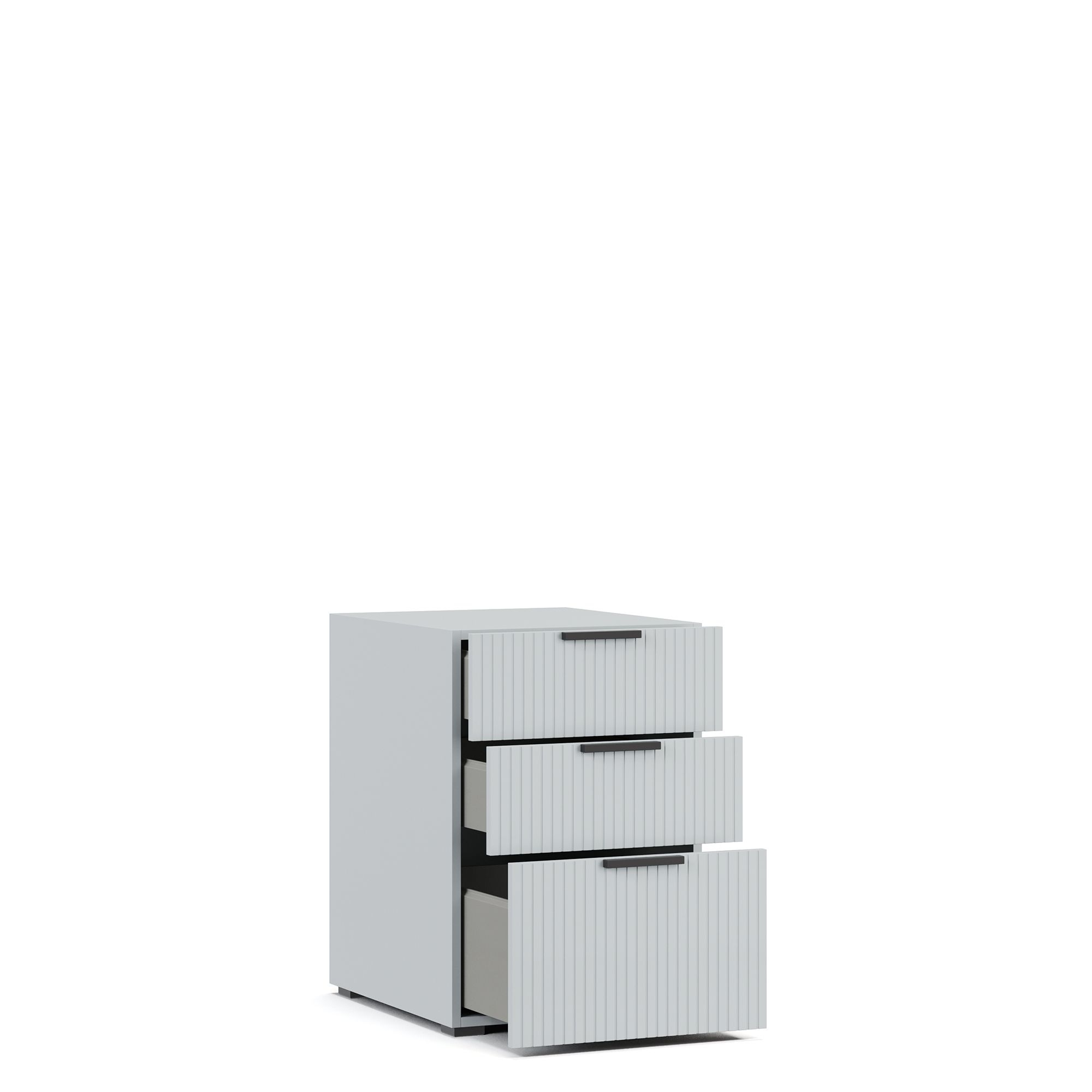 Тумба NAPOLI оснащена тремя выдвижными ящиками в отделке вертикальной фрезеровкой. Внутренняя отделка ящиков выполнена в текстуре Шенилл. В качестве опции предлагается возможность установки тумбы на опоры высотой 12 см (заказываются отдельно). В стоимость изделия включена крышка в древесной текстуре. Использование тумбы без этого элемента дизайном не предусмотрено.