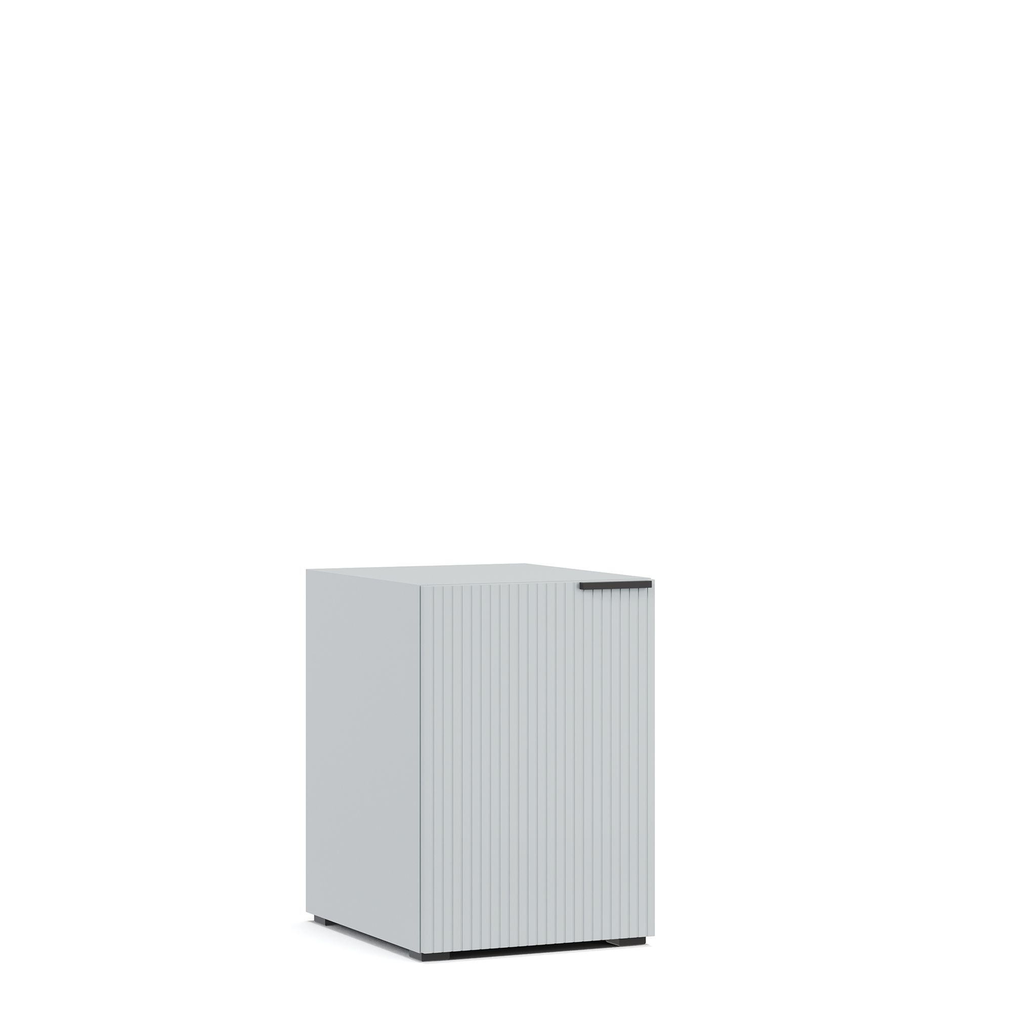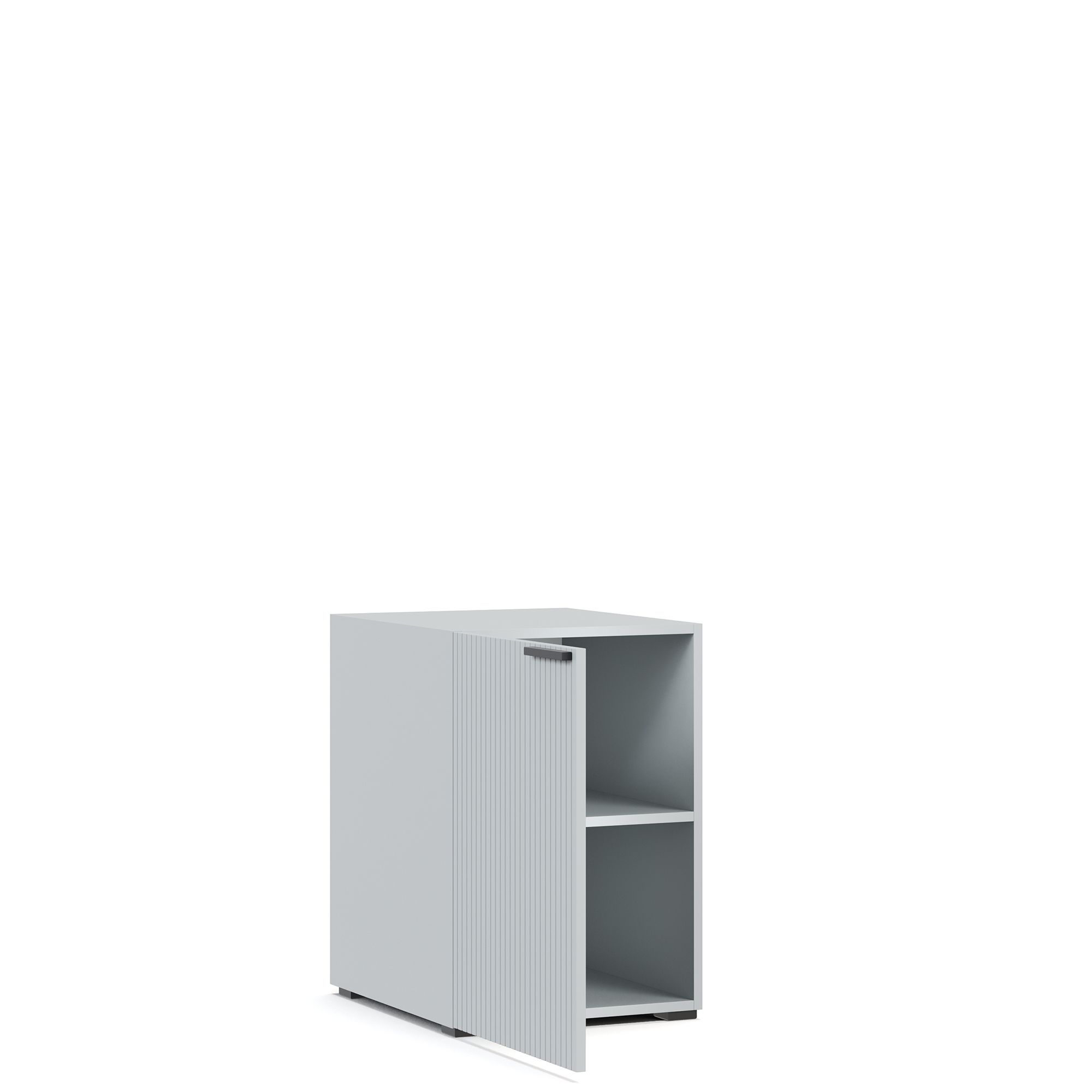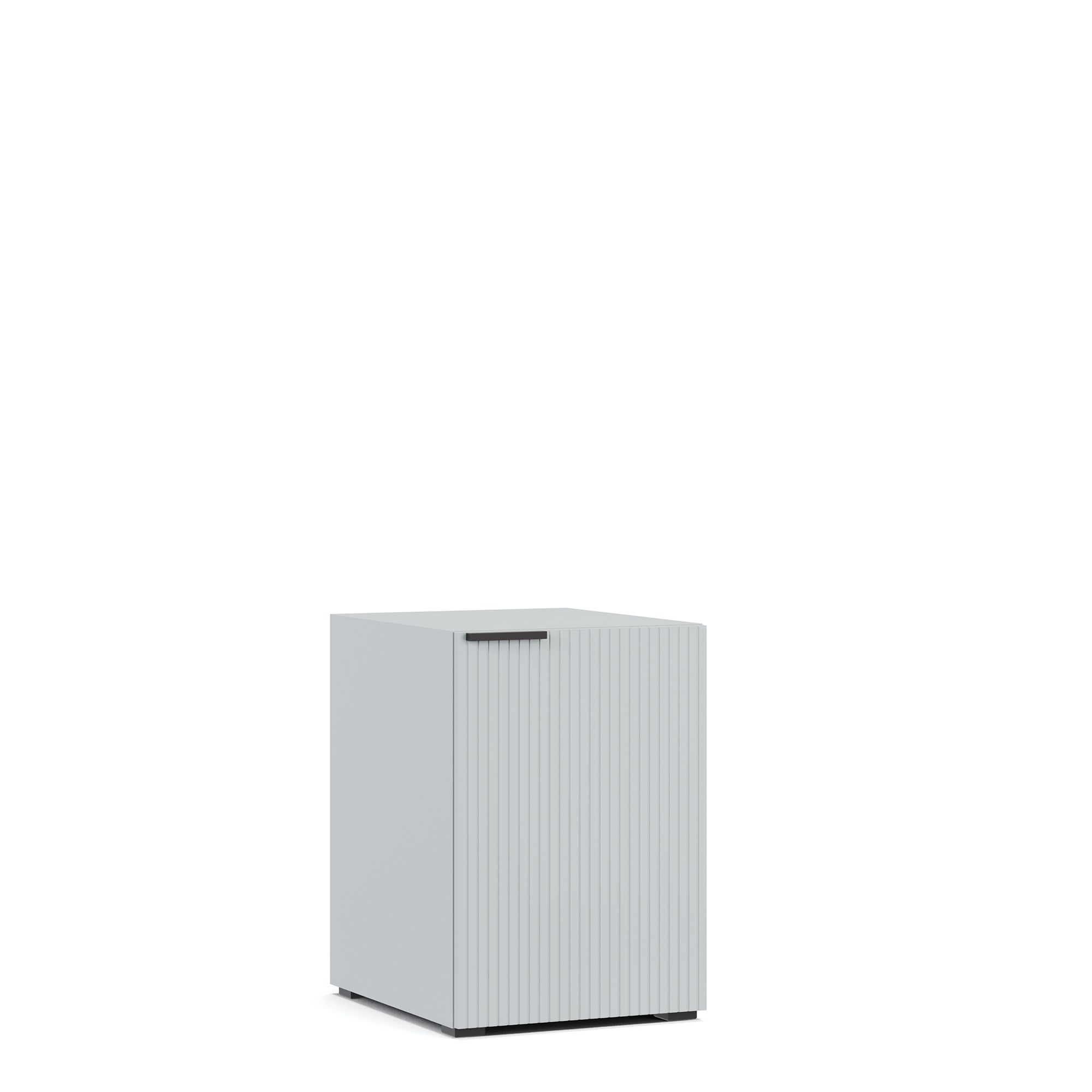 Тумба NAPOLI оснащена распашным фасадом, декорированным вертикальной фрезеровкой, за которым располагаются полки из ЛДСП. Возможно как левое, так и правое открывание фасада. В качестве опции предлагается возможность установки тумбы на опоры высотой 12 см (заказываются отдельно). В стоимость изделия включена крышка в древесной текстуре. Использование тумбы без этого элемента дизайном не предусмотрено.