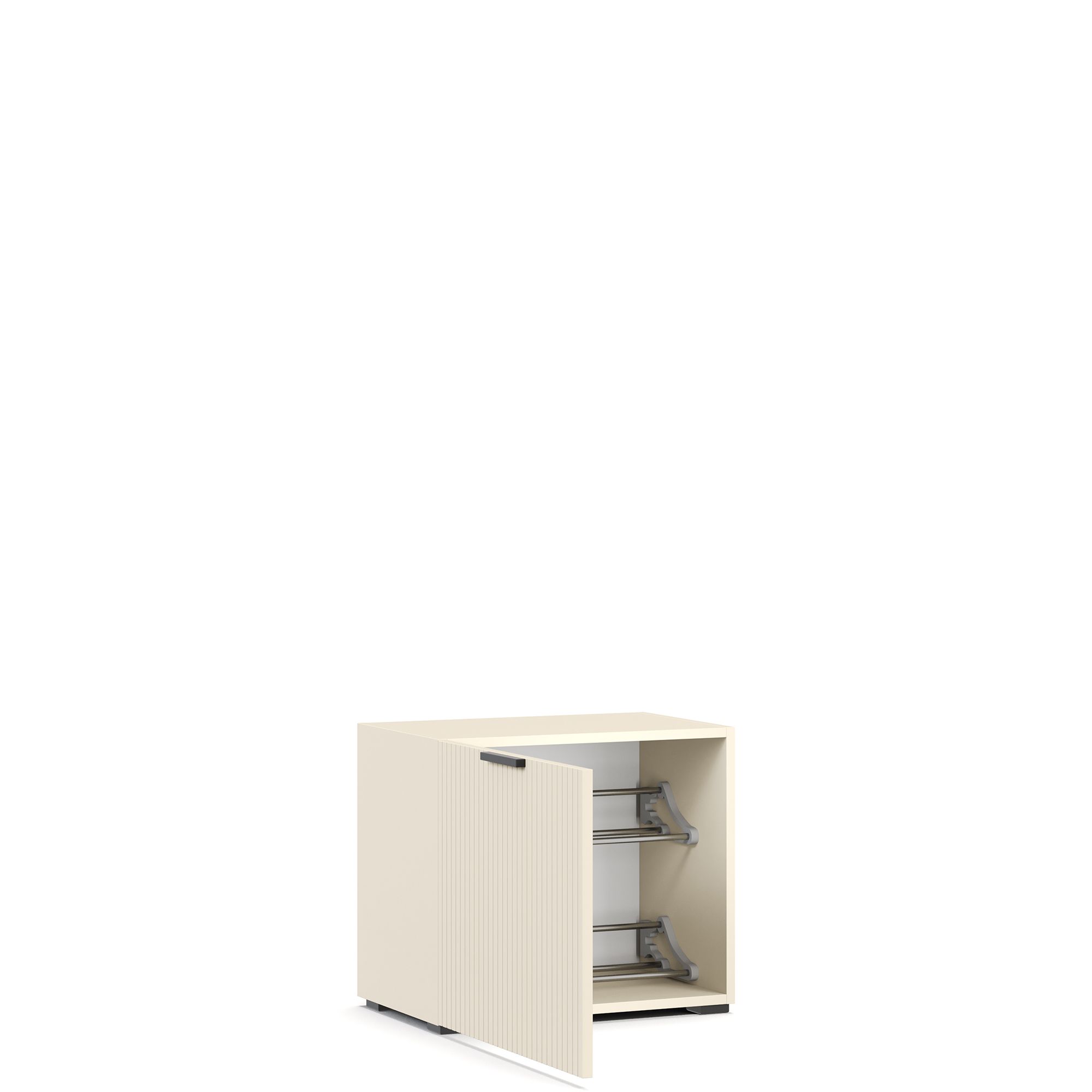 За распашным фасадом тумбы NAPOLI, декорированным вертикальной фрезеровкой, располагаются две металлических полки для обуви. Возможно открывание фасада как на правую, так и на левую сторону. В качестве опции предлагается возможность установки тумбы на опоры высотой 12 см (заказываются отдельно). В стоимость изделия включена крышка в тон фасадов (возможна замена на крышку в древесной текстуре). Использование тумбы без этого элемента дизайном не предусмотрено.