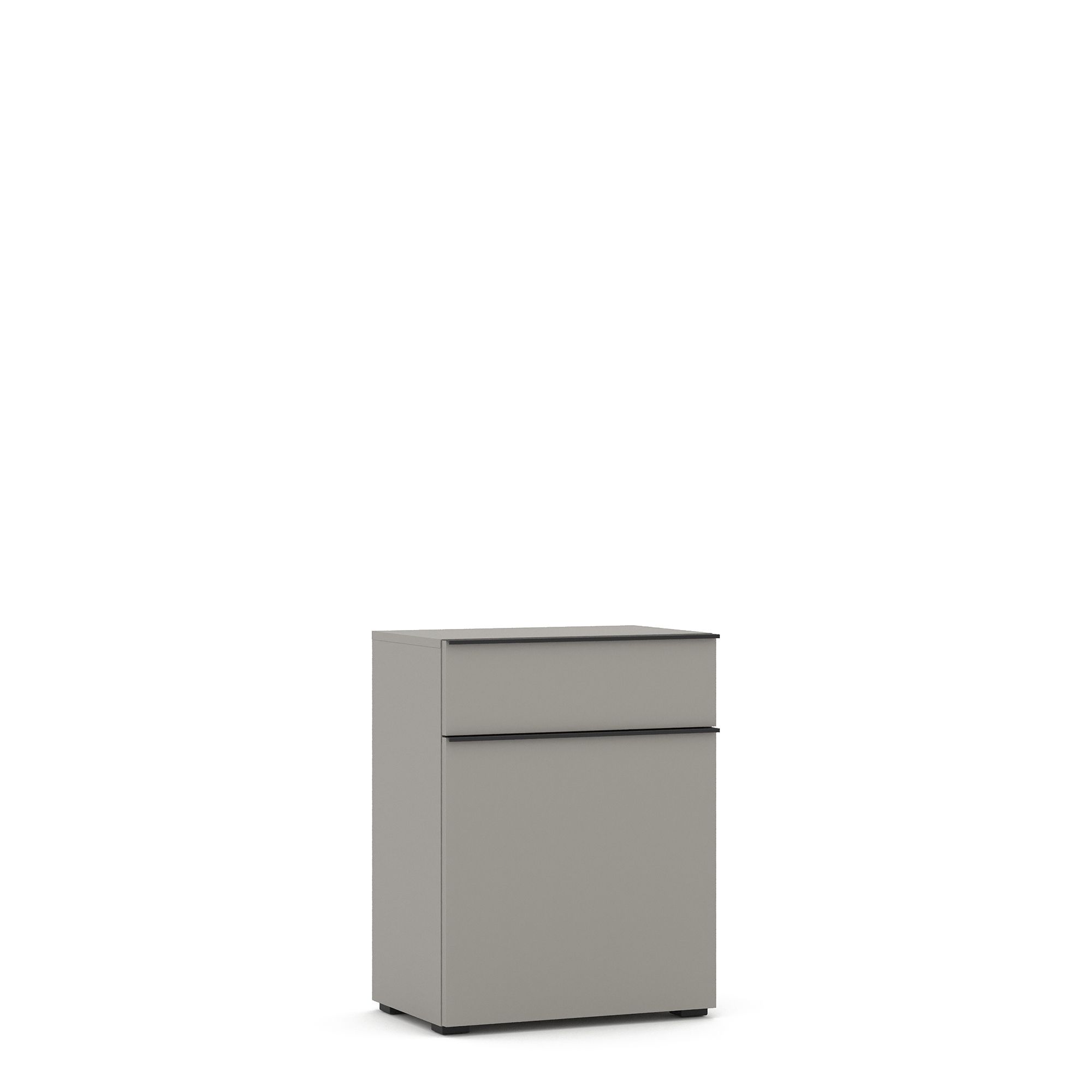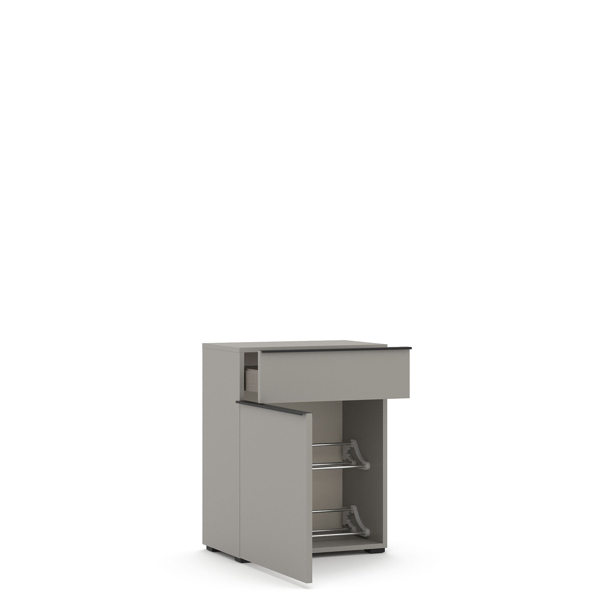 Обувная тумба TERAMO оснащена выдвижным ящиком и распашным фасадом с системой открывания Push (возможно как правое, так и левое открывание). Внутреннее наполнение тумбы представляет собой две металлические полки для обуви.