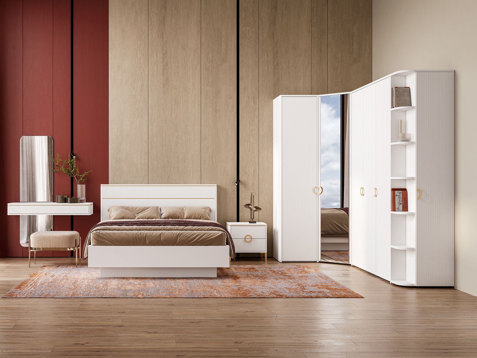 Коллекция включает мебель в едином стиле для гостиных и спален, что позволяет сформировать функциональные зоны, соответствующие индивидуальным предпочтениям, и найти гармоничные интерьерные решения как для типовой, так и для нестандартной планировки.