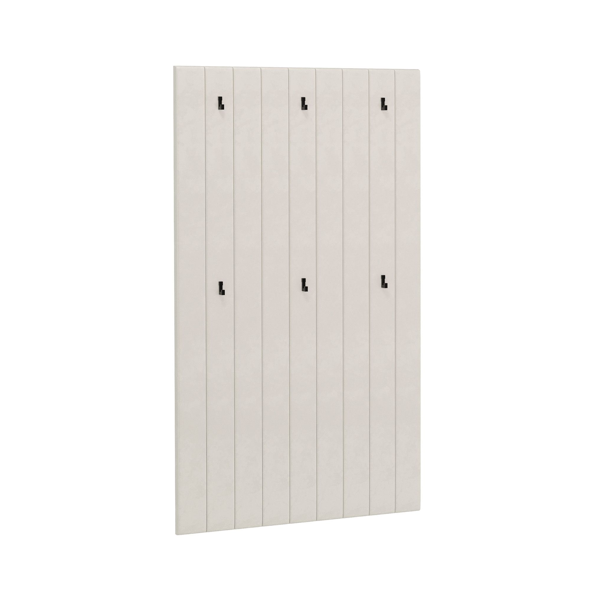 Мягкая панель ARTA в отделке бежевым велюром с декоративной стежкой оснащена металлическими крючками с покрытием в оттенке горького шоколада, предназначенными для верхней одежды и аксессуаров. Ткань отличается приятной тактильностью, повышенной износостойкостью и плотностью (исполнение «антикоготь»).