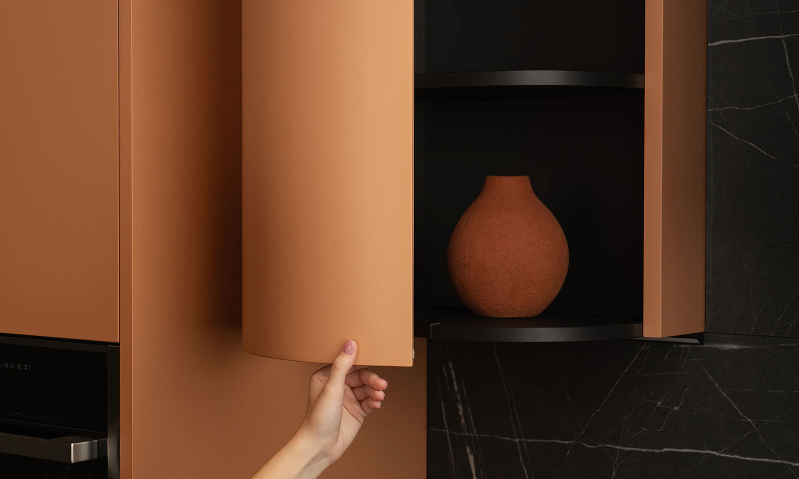 «Работая над этой коллекцией, мы стремились создать нечто большее, чем просто функциональное пространство. Скругленные фасады сыграли ключевую роль, добавив мягкость и элегантность в общий дизайн. Их плавные линии способствуют расслабляющей атмосфере. Одной из особенностей BAROLO является широкий выбор отделок. Мы предлагаем как матовые, так и глянцевые эмали, которые прекрасно вписываются в современные интерьеры. Матовые поверхности придают кухне утонченный и сдержанный вид, в то время как глянец способен добавить яркие акценты и создать игру света, наполняя пространство ощущением воздушности и свободы.»