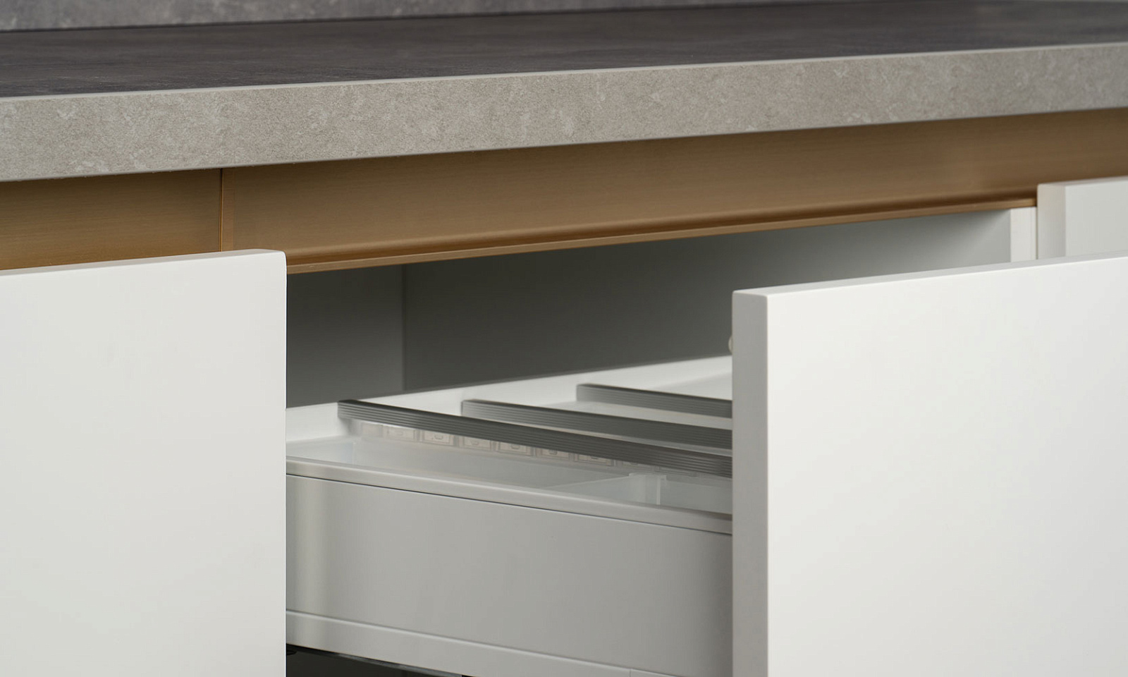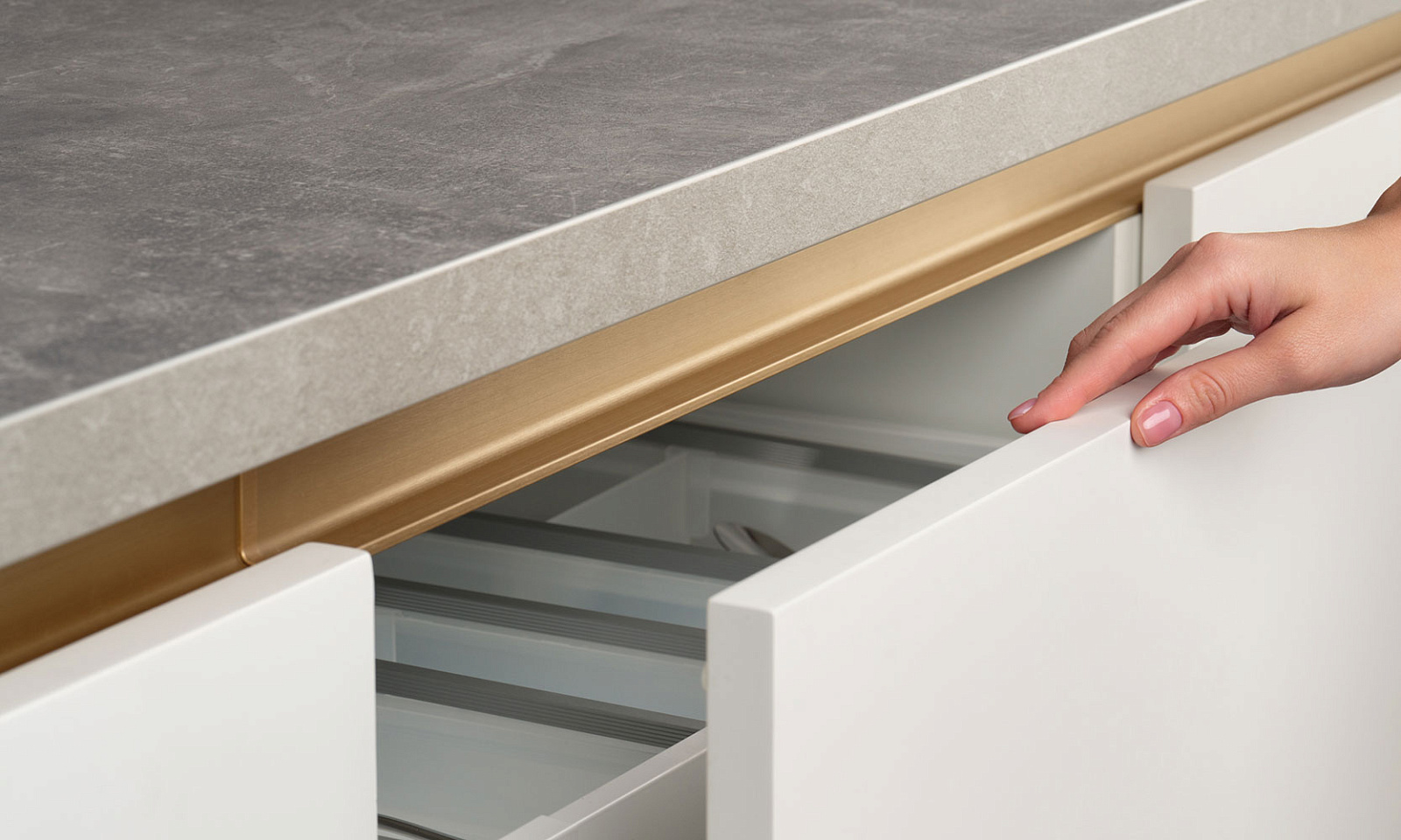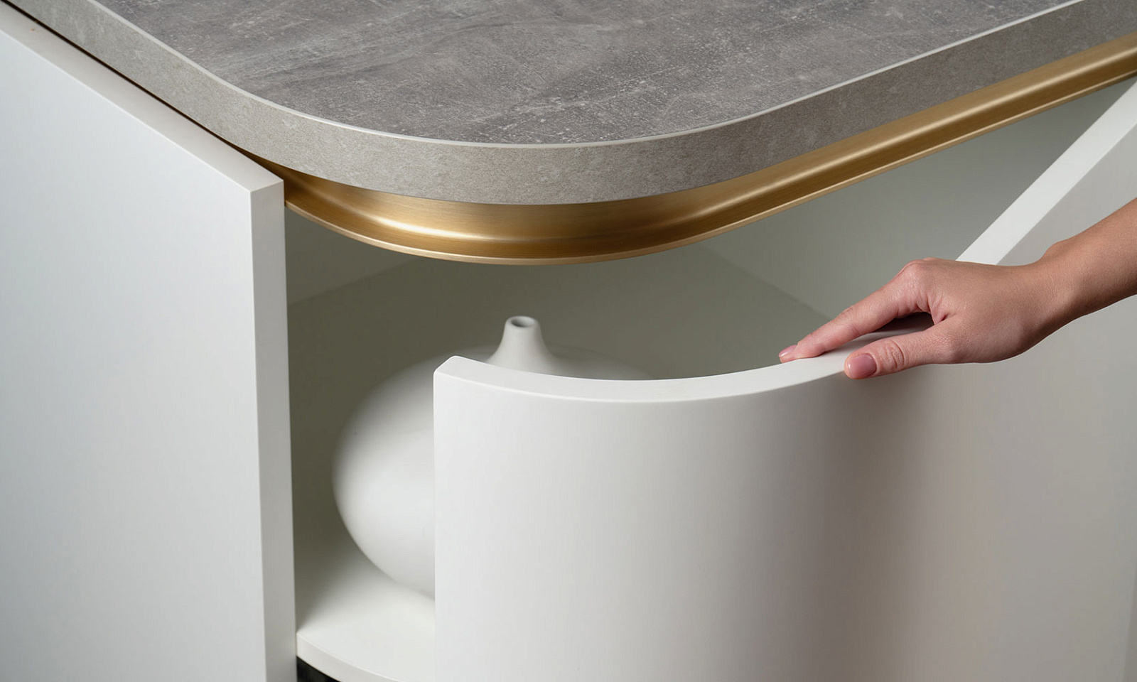В дизайне коллекции используются профили GOLA в трендовой отделке Золото матовое, Белый, Черный и Алюминий анодированный. А для любителей стильной внешней фурнитуры – эксклюзивная ручка-скоба от итальянского бренда Citterio Giulio, которая также доступна в нескольких цветовых исполнениях.