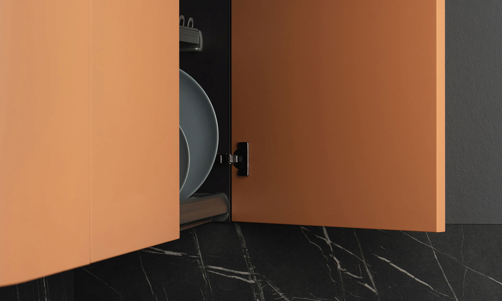 Премиальная отделка фасадов эмалью по технологии 5D позволяет получить тактильно приятные, гладкие края без кромок. На выбор предлагаются цвета тщательно подобранной авторской палитры либо окрашивание на заказ. А при необходимости уложиться в рамки определенного бюджета мы можем выполнить одностороннее окрашивание.