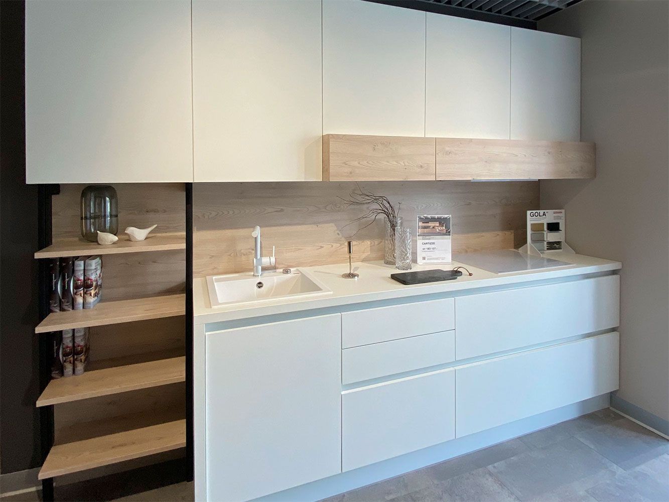Дизайн коллекции CARTIZZE – это легкость, которая достигается за счет светлых оттенков, лаконичных форм и акцентных открытых элементов. Стеллажи авторской конструкции структурируют пространство рабочей зоны, разделяя его на функциональные участки.