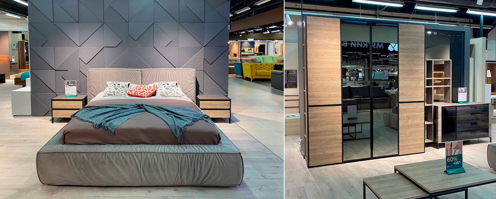 В экспозицию вошли трендовые новинки ассортимента: кровати в мягком текстильном корпусе, платяные шкафы со стеклянными фасадами, оснащенные дизайнерской подсветкой, угловые системы хранения и другие современные функциональные решения по организации пространства. Здесь же можно приобрести матрасы и товары для сна.