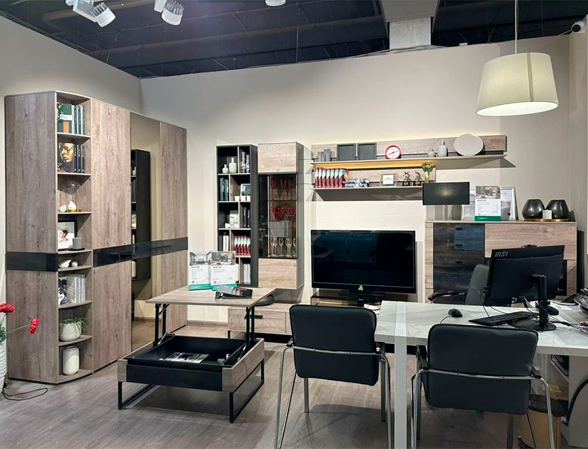 Заходите через главный вход торгово-развлекательного комплекса «Красный кит», идете прямо на эскалатор, доезжаете до второго этажа, далее прямо по переходу попадаете в новое здание развлекательного комплекса. Огибаете стеклянное ограждение вдоль магазинов Pandora и Lord, и проходите по переходу, находящемуся между магазинов H&M и Pinacci, в здание многоуровневой парковки и мебельного центра. В конце перехода налево находится выход к лифтам. Спускаетесь на первый этаж и Вы в мебельном центре «Красный Кит».