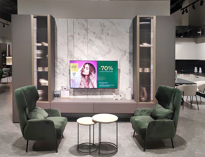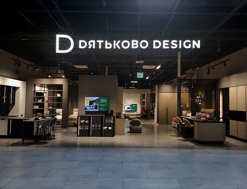 Салон «Дятьково Design» расположен на первом торговом уровне, рядом с гипермаркетом «О'КЕЙ».