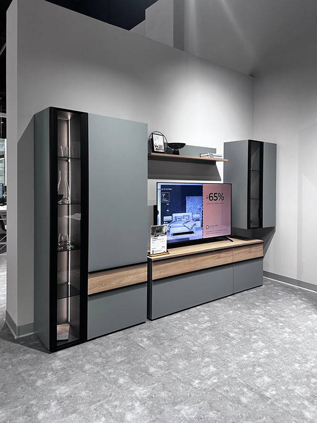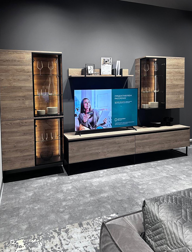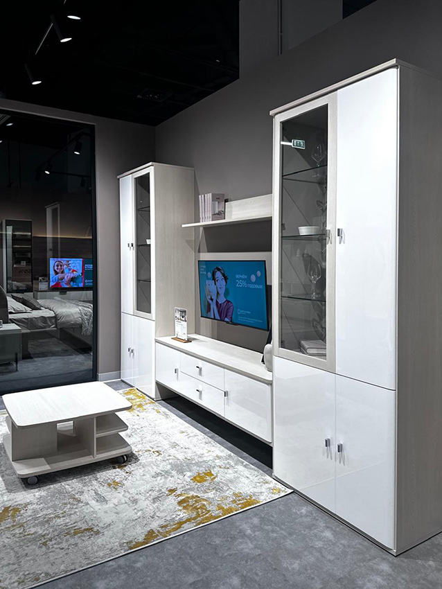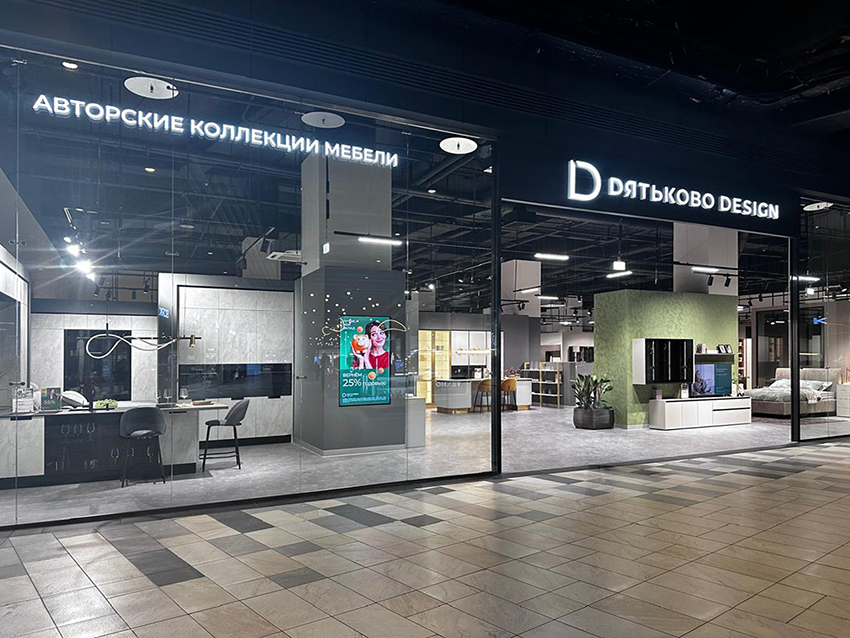 Салон «Дятьково Design» находится на первом этаже, рядом с гипермаркетом «Глобус». На площади около 1500 квадратных метров представлены более 50 мебельных композиций для всех зон домашнего пространства – от прихожей до кухни.