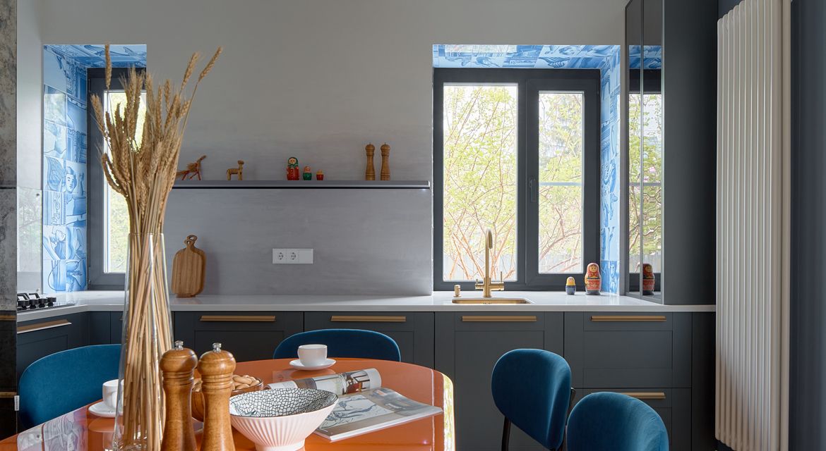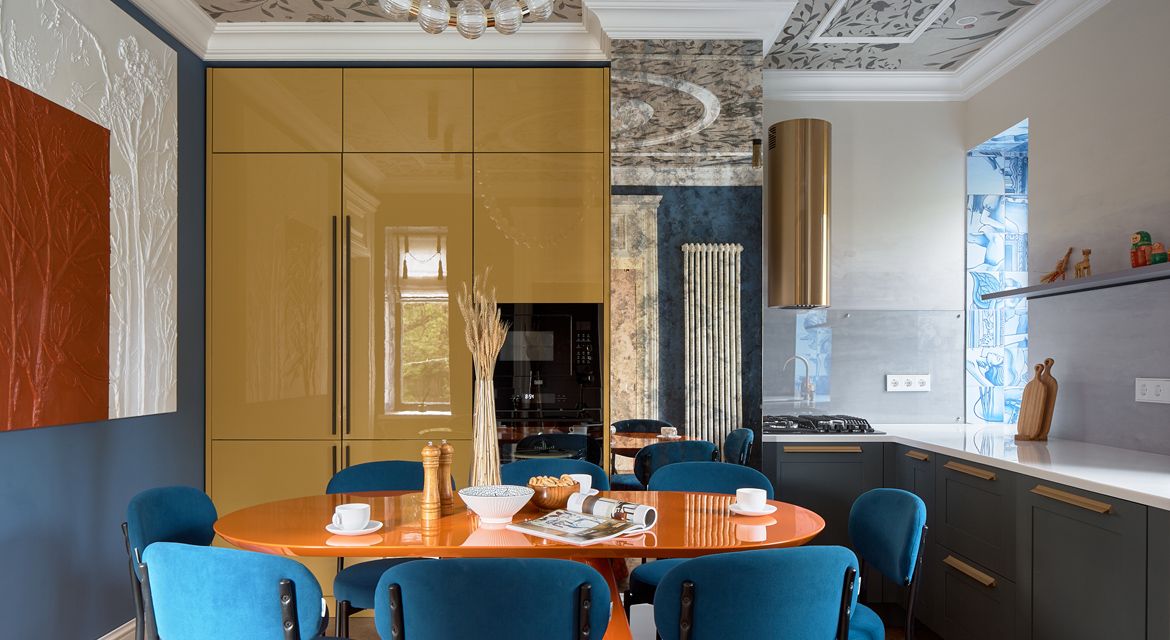Герои программы «Дачный ответ» на НТВ – участник ансамбля военно-исторической песни Петр Лубенко, его жена Алина и шестеро детей. В создании кухни-столовой для большой и дружной творческой семьи дизайнеры программы использовали эклектичный микс стилей, где классические традиции гармонично сочетаются с современностью.