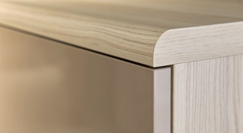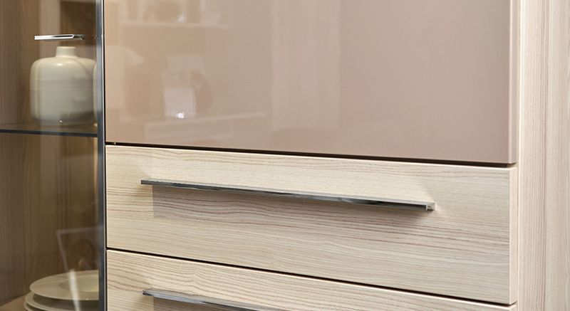 Светлая древесная текстура Coimbra, плавные, скругленные линии, стильные оттенки глянца и тонированное стекло. Коллекция ЭСТЕ / ESTE, воплотившая в себе самые современные западные тенденции в дизайне интерьеров, делает визуально более просторной даже компактную гостиную.